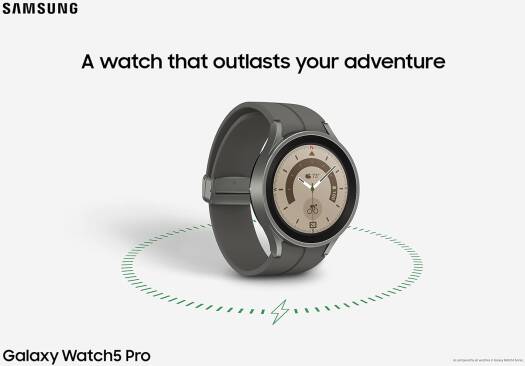 Galaxy Watch5 Pro is our most advanced outdoor watch yet, featuring a 2x stronger***** sapphire crystal glass display.*Requires smartphone with Android 8.0 or later, 1.5GB or more RAM and Samsung Health app (free) version 6.22 or later. Not intended to diagnose or treat medical conditions. For sleep pattern results, user must wear watch while they sleep for at least 7 nights and complete a survey. **The Samsung BIA is a body analyzer that uses bioelectrical impedance analysis (BIA) technology to track body composition based on weight, body fat, body mass index (BMI), skeletal muscle, body water, and basal metabolic rate (BMR) measurements. It is not intended to specifically diagnose or treat a medical condition. Requires smartphone with Android 8.0 or later, 1.5GB or more RAM and Samsung Health app (free) version 6.22 or later. ***The heart rate software functions are not intended for use in the diagnosis of disease or other conditions, or in the cure, mitigation, treatment or prevention of disease. Requires Galaxy smartphone with Android 8.0 or later, 1.5GB RAM or more and the latest version of the Samsung Health Monitor app (available only at the Samsung Galaxy app store). ****Consistent with IP68 rating, water-resistant in up to 5 feet of water for up to 30 minutes. Rinse residue / dry after wet. Requires smartphone with Android 8.0 or later, 1.5GB or more RAM and Samsung Health app (free) version 6.22 or later. *****As compared to all watches in Galaxy Watch4 Series. ******Compatibility for Galaxy wearable apps: Android 8.0 or later, 1.5GB of RAM. *******GPS Route Tracking requires import of GPX map file for hiking or cycling from third party source into Samsung Health app. GPS accuracy may be affected by weather, atmosphere and other obstructions such as buildings and tall trees. Track Back feature leads back to the start of trail for hiking or cycling. Option is only available if you have tracked your route..
