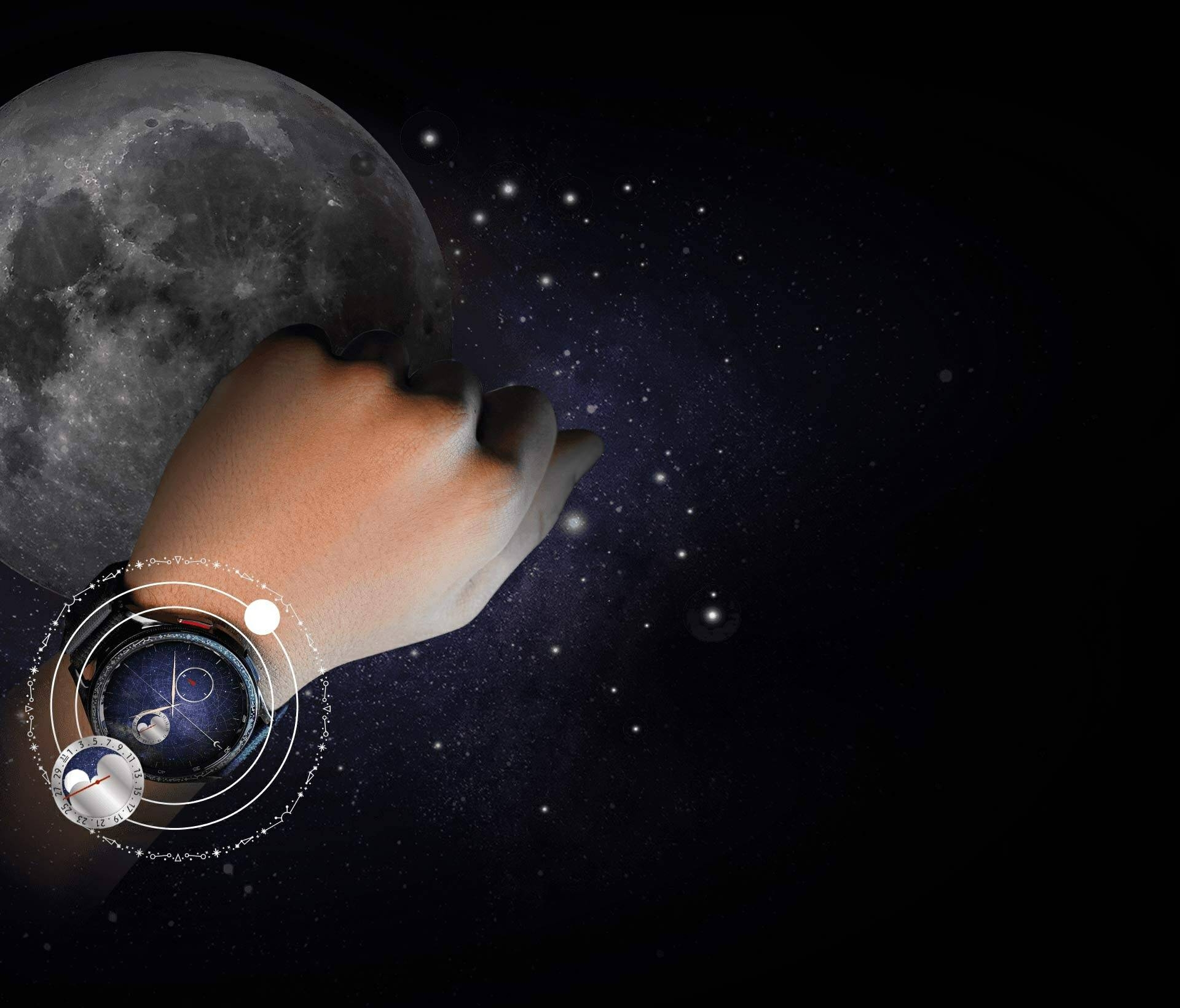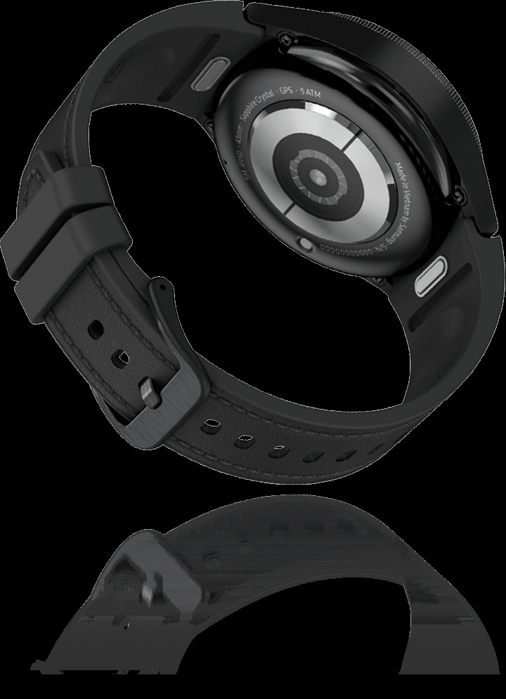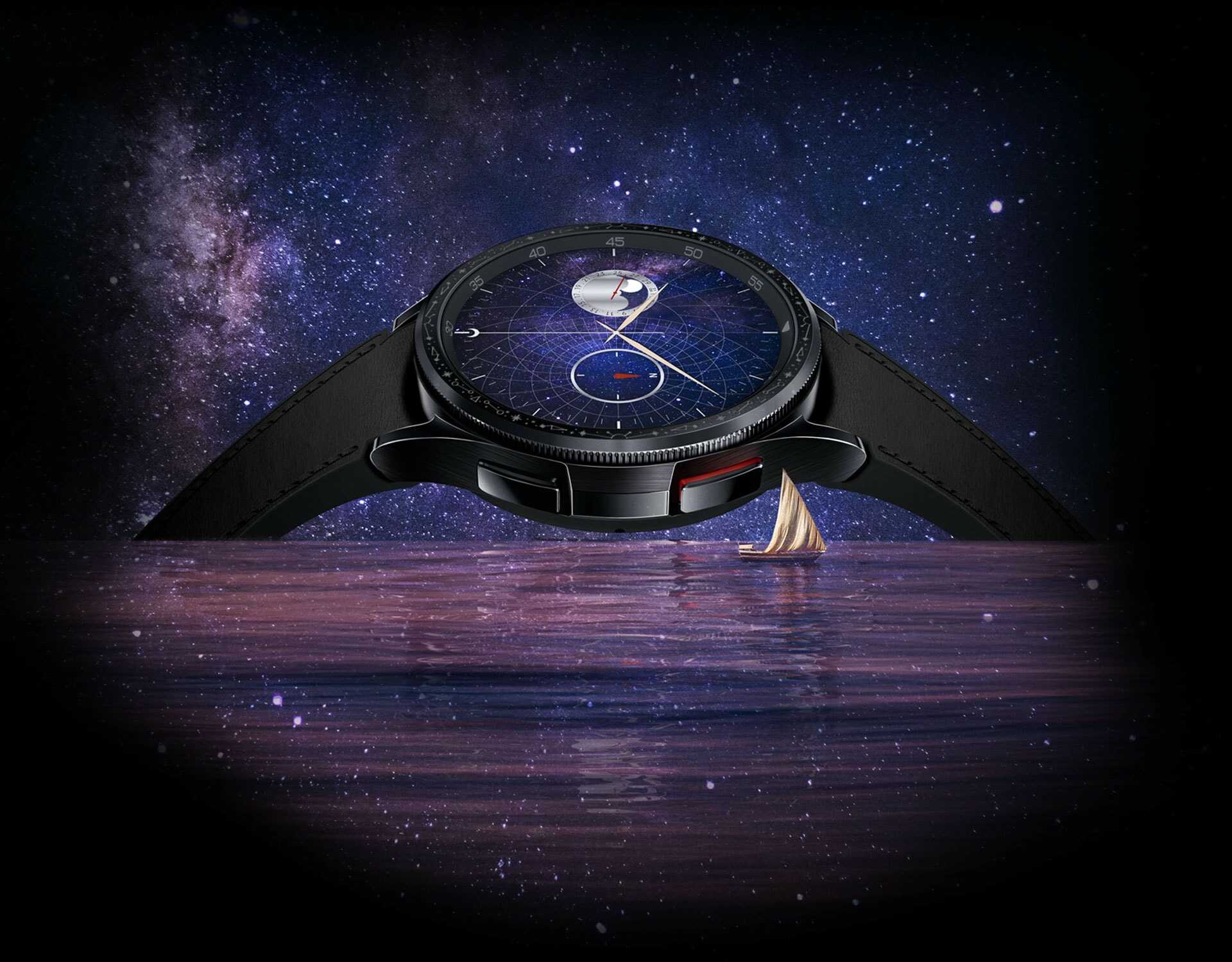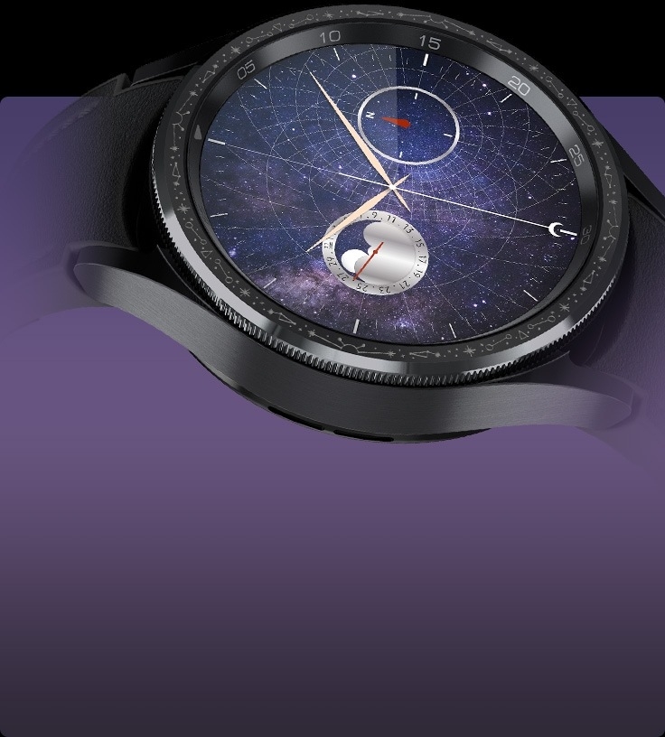 Galaxy Watch6 Classic Astro Edition BUY NOW Design Story An ode to the past Paying homage to the region’s glorious past and remarkable contributions to the advancement of timekeeping, our Astro-inspired watch honors the scientific legacy of that extraordinary time. For centuries, we held the universe in our hands. The Astrolabe took us to where our dreams dared. While we no longer look to the skies and stars to guide our adventures, the Astrolabe’s legacy finds new ways to inspire us. With the Galaxy Watch6 Classic Astro Edition, we embark on a journey towards an era of bold innovation and limitless possibilities. Software Design Future Astrolabe — Exclusive Watch Face COMPASS Navigate New Galaxies. The fundamental spirit of the Astrolabe as a guide embraces a new form through the compass complication placed directly on the dial. The compass that once guided explorers is here to set you on new adventures. MOONPHASE Indulge in Celestial Wonder. Celebrating the Astrolabe’s celestial wonders with a captivating moonphase complication, track the movement of the moon and the changing months directly from your wrist. SOLAR TRACKER From Dawn to Dusk. The solar tracker complication mirrors the sun’s movement, gracefully tracing its journey from sunrise to sunset— celebrating the sun’s central role in a traditional Astrolabe’s function. CALENDAR The calendar feature of the Astrolabe once gave meaning to the flow of time, allowing users to calculate the day of the month based on the position of the moon. Hardware Design Built for those who explore Astro inspired rotating bezel The bezel with a classic twist—the slim spinning bezel gives you more fluid scrolling experience on a larger screen. Its Astro-inspired engravings and an old-world charm that stands out against the modern design of the watch. Larger display The biggest screen on a Galaxy Watch yet—more space means more information at a glance and more room to express yourself. Experience enhanced visuals and clear motion graphics on a 30% larger display. The 15% thinner bezel and increased screen size create an aesthetically perfect display-to-bezel ratio—add extra space for every tap and swipe. Sapphire crystal glass Built for the everyday, and the tough day. The watch’s Sapphire Crystal glass display makes it resilient against daily wear and tear. It brings the enduring qualities of the Astrolabe to the watch with the tough display that’s expertly crafted with Sapphire Crystal glass to protect its timeless beauty. One-click band Emulating the Astrolabe’s versatility, we let you switch between bands to take your look from rugged to classy, depending on your mood. Press the band release button to change your straps—just a click to go from workout to go-out styles. The watch that never stops giving Do more with all-day battery Improve your sleep quality with detailed sleep tracking Personalized HR zone gets you fitter your way Navigate new worlds in a Snap Try Galaxy Watch6 Classic Astro Edition on Snapchat and experience an astral wrist makeover. Scan to try-on Galaxy Watch6 Classic Look your best. Get more done. That’s the dream. We’re making it a reality with our largest watch screen yet, custom exercise routines and sleep tracking — finished with a timeless aesthetic. Start your everyday wellness journey with a refined classic More screen. Thinner bezel. Experience enhanced visuals and clear motion graphics on a 20% larger display. The 15% thinner bezel and increased screen size create an aesthetically perfect display-to-bezel ratio — and extra space for every tap and swipe. Sapphire Crystal glass. Designed to withstand daily wear and tear. The display of Galaxy Watch6 Classic is expertly crafted with Sapphire Crystal glass to protect its timeless beauty. And the finishing has IP68 and 5ATM ratings, so you can keep your watch on through all your adventures. Embrace the time-defying style of a classic. Inspired by the iconic design of diving watches, the slim spinning bezel on Galaxy Watch6 Classic brings history into the future with more fluid, responsive scrolling for intuitive interaction with the screen. And the circular frame is crafted with sleek stainless steel to elevate every glance at the clock. Hands-on shooting, hands-free Pair your watch with Galaxy Z Fold5 to capture the healthy you up close or from a distance. Galaxy Z Fold5’s Flex mode and Camera Controller let you easily switch between photo and video mode, or zoom in and out, all from the comfort of your wrist. Then tap the shutter button on your watch to take a pic. Meet your Personalised HR Zone Your watch can evaluate your fitness capacity to determine your personal HR Zone. If there’s a specific HR zone you want to hit, you can set the goal manually. As you workout you’ll be alerted when you enter your target HR Zone, whether that’s fat burning, cardio or high-intensity training. Move out of the zone, and it’ll alert you too — letting you adjust your effort accordingly. Product information Network Technology: GSM / HSPA / LTE Body: Dimensions: 46.5 x 46.5 x 10.9 mm (1.83 x 1.83 x 0.43 in) Weight: 59 g (47mm), 52 g (43mm) (2.08 oz) Build: Sapphire crystal front, stainless steel frame SIM: eSIM MIL-STD-810H compliant* (does not guarantee ruggedness or use in extreme conditions) 50m water resistant (IP68) ECG certified Blood pressure monitor Compatible with standard 20mm straps Display: Type: Super AMOLED Resolution: 480 x 480 pixels (~453 ppi density) Protection: Sapphire crystal Always-on display Platform: OS: Android Wear OS 4, One UI Watch 5 Chipset: Exynos W930 (5 nm) CPU: Dual-core 1.4 GHz Cortex-A55 GPU: Mali-G68 Memory: 16GB 2GB RAM, No card slot Camera: None Sound: Loudspeaker: Yes 3.5mm jack: No Connectivity: WLAN: Wi-Fi 802.11 a/b/g/n, dual-band Bluetooth: 5.3, A2DP, LE Positioning: GPS, GLONASS, GALILEO, BDS NFC: Yes Radio: No USB: No Sensors: Accelerometer, gyro, heart rate, barometer, altimeter, compass, SpO2