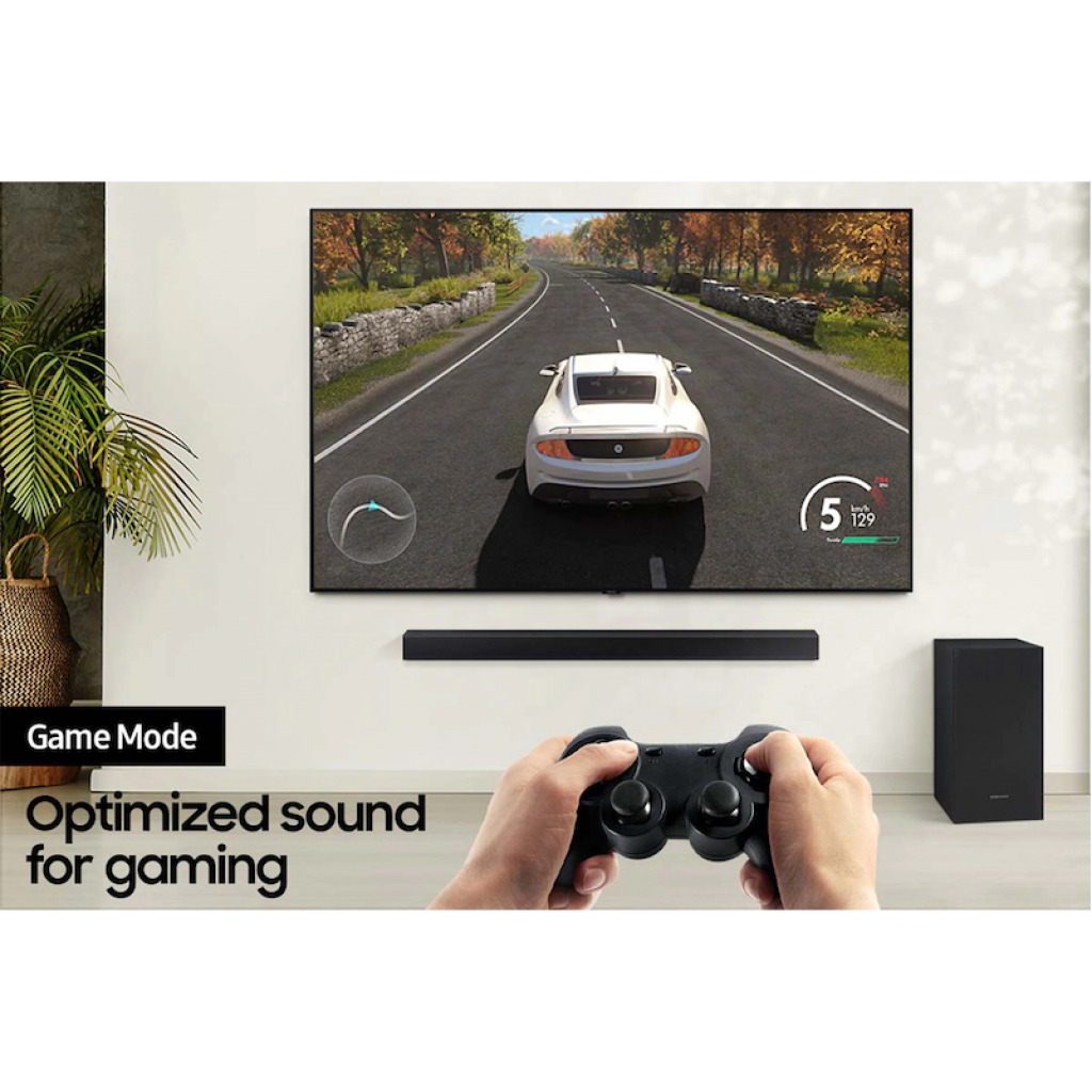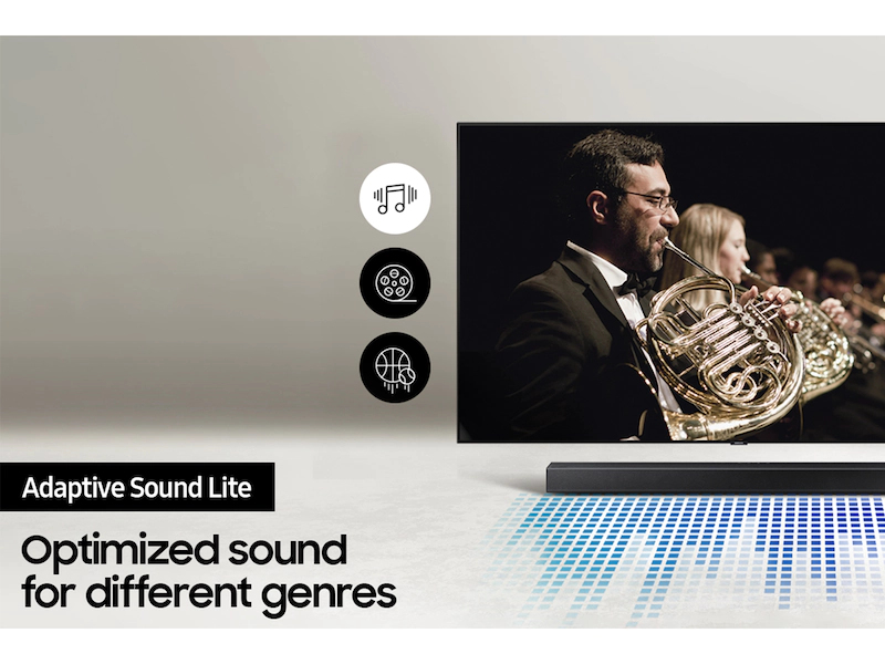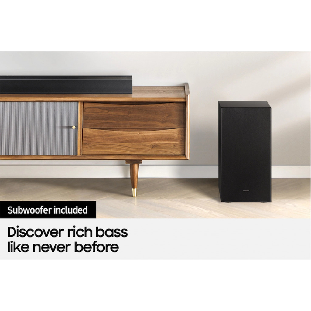 Key Features: A soundbar that delivers virtual surround sound with Dolby Atmos 5.1 & DTS Virtual:X The built-in center channel speaker provides enhanced dialogue, so you never miss a beat DOLBY DIGITAL 5.1 / DTS VIRTUAL:X – Immersive surround sound simulation that draws you in. BUILT-IN CENTER SPEAKER – A dedicated speaker enhances dialogue so you hear every word. ADAPTIVE SOUND LITE – Optimizes sound to video content. SUBWOOFER INCLUDED – Wireless subwoofer included. BASS BOOST – Instantly amplify the bass with the touch of a button.