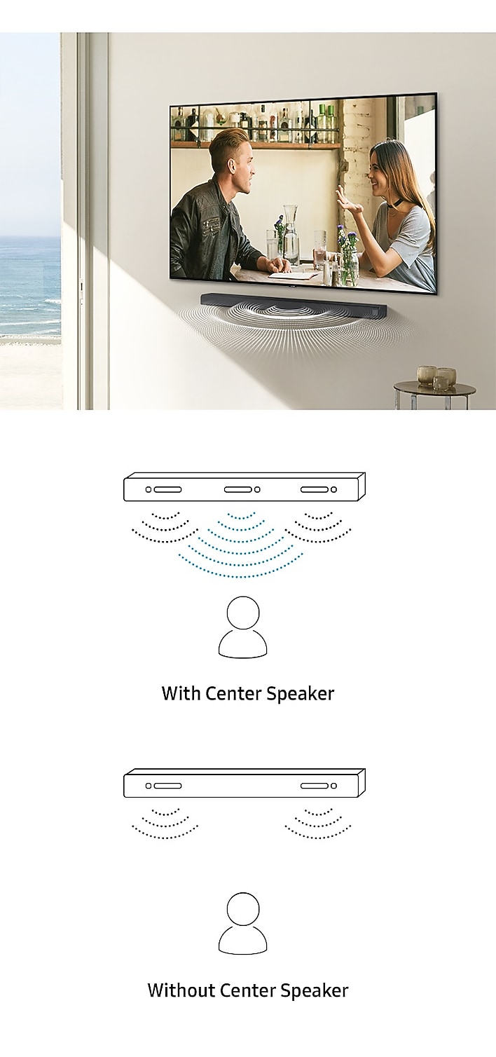Elevate your experience with 3D virtual surround sound and built-in center speaker