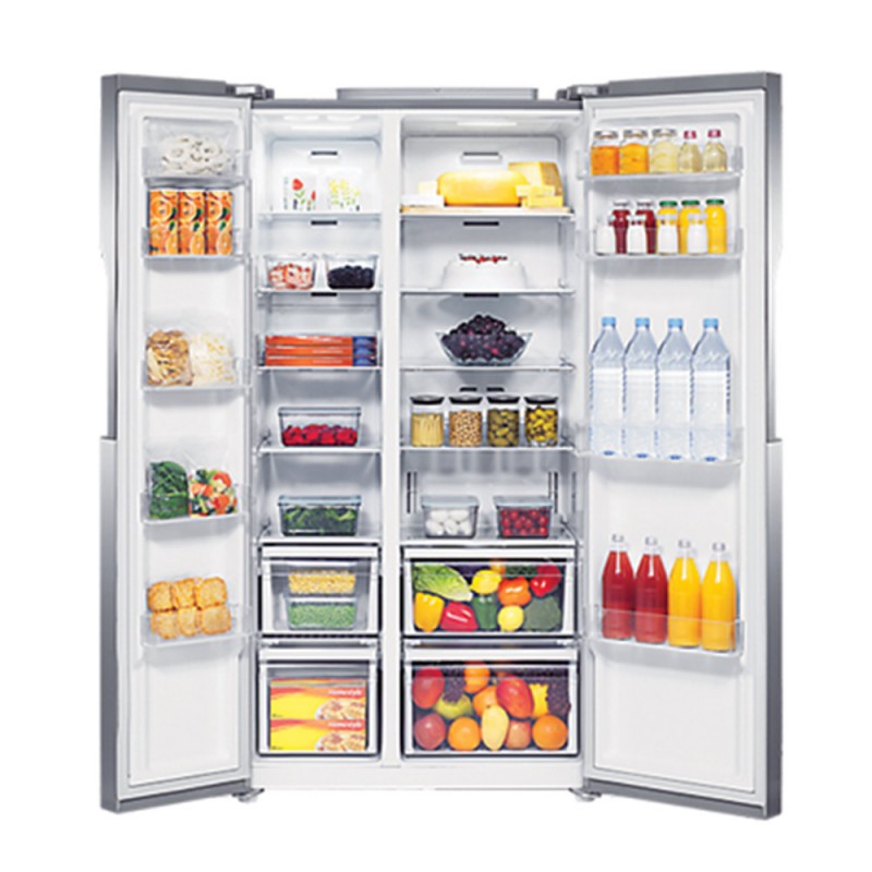 SAMSUNG Side By Side Refrigerator Retain natural freshness of your fruits and vegetables with this refrigerator. The SAMSUNG Side By Side Refrigerator will keep your food fresh even though the power is out. The refrigerator displays various compartments that will hold your food and other items for you to differentiate where you kept a particular item. Grab it now Features 538 Litres Twin Cooling System No Frost Technology Multi Flow System Tempered Glass Shelves Recces Handle 2 Vegetable and Fruit Drawer 5 Shelves Interior LED Light Door Alarm