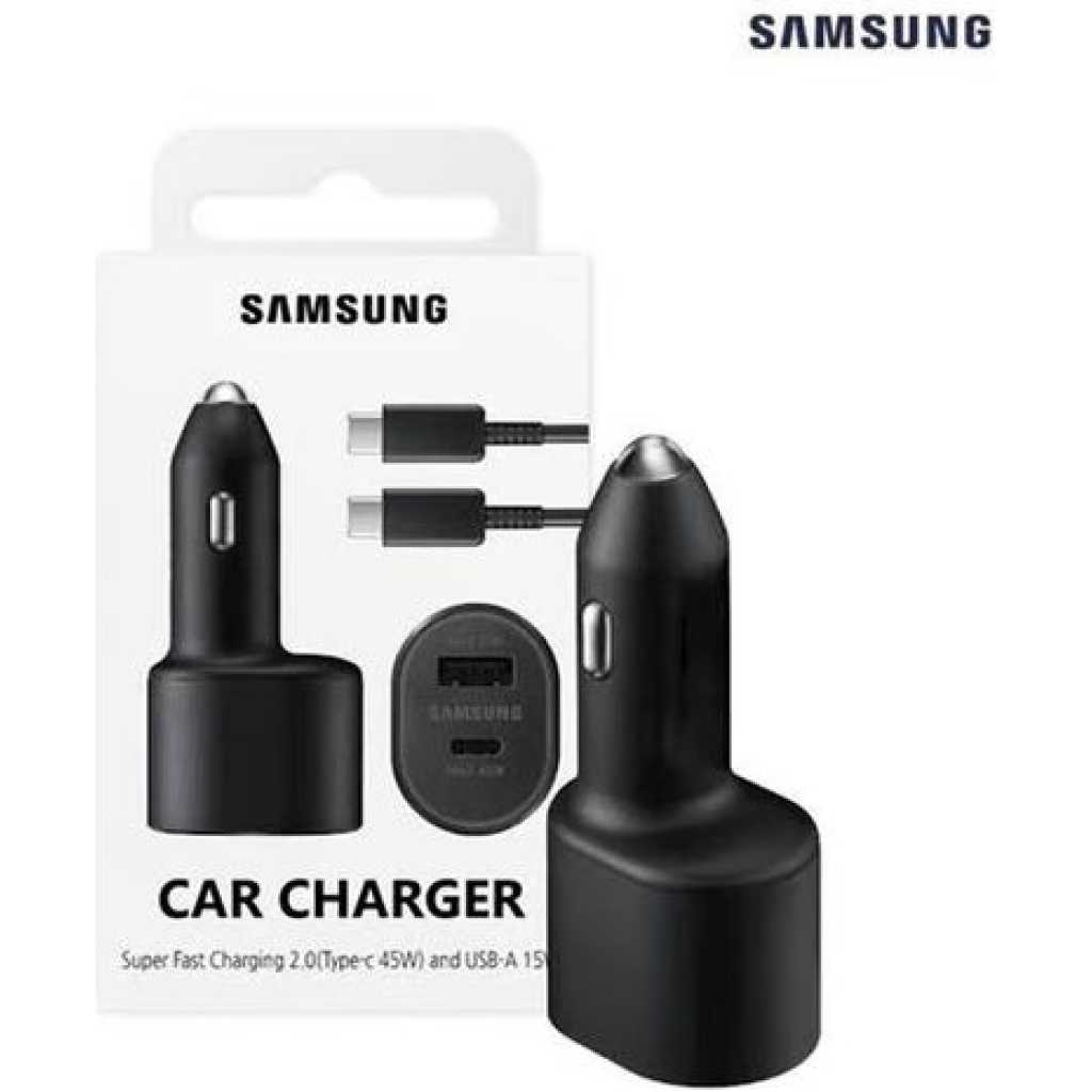 Get back to 100% before you arrive The USB type-C port lets you harness the power of up to 45W to recharge your device with the incredible speed of Super Fast Charging 2.0. And the USB Type-A port maxes out at 15W for quick boost, too, for a total of up to 60W coming from this power charger. Key Features: The USB Type-C port lets you harness the power of up to 45W to recharge your device with the incredible speed of Super Fast Charging 2.0. And the USB Type-A port maxes out at 15W for a quick boost, too, for a total of up to 60W coming from this powerful charger. Charge two devices at once with the dual port on this space-saving car charger. Both you and a friend can experience fast charging while on the road, or you can power up your wearables while keeping your phone at 100%. No worries about compatiblilty. This charger supports PD, QC, and AFC charging protocols, so you can charge your phone, a friend’s phone, tablets, laptops, wearables, game consoles, and so much more. Total Max. 60W (Max. 45 W + Max. 15 W); Output Current 3A; USB-C x 1 Port + USB-A x 1 Port
