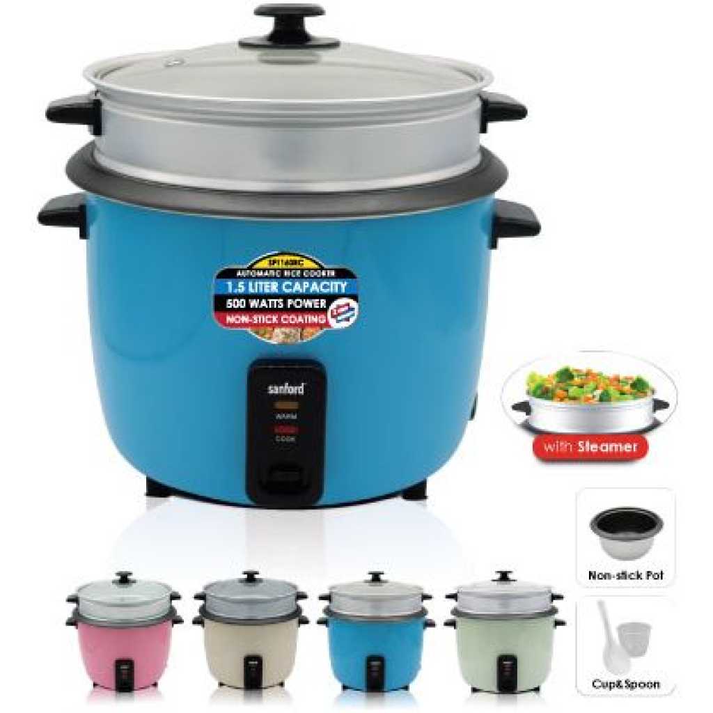 Sanford 2.8 Litre Rice Cooker Steamer Pot- Multi-colour This cooker combines the advantages of rice cookers, pressure cookers, vacuum thermal pots, and electric stewing pots currently available in the market. It is safe to use, easy to operate, and extremely efficient. With the updated one-touch cooking features, well-built structure, and distinctive design, Ultimate Rice Cooker is considered to be an ideal kitchen helper for all modern families. Healthy Cooking Air tight cooker design not only preserves food nutrition and the original taste of food but also requires less oil during the cooking process which makes your diet much healthier. Safe and Eco-Friendly Neither open flame nor spillage during the cooking process – safe to cook even with children around. Powered by electricity – does not pollute air nor release excess hot air. High Efficiency Saving energy up to 60% and cutting operation time by 40% Easy To Clean Non-stick inner pot, sturdy outer pot, and stainless steel body. Key Features: Sanford 2.8 Litre Rice Cooker Steamer Pot- Multi-colour 2.8 Litres Capacity Automatic Temperature Control Keep-warm Function Aluminium Alloy Pot Overflow and Scald Protection
