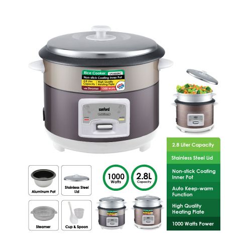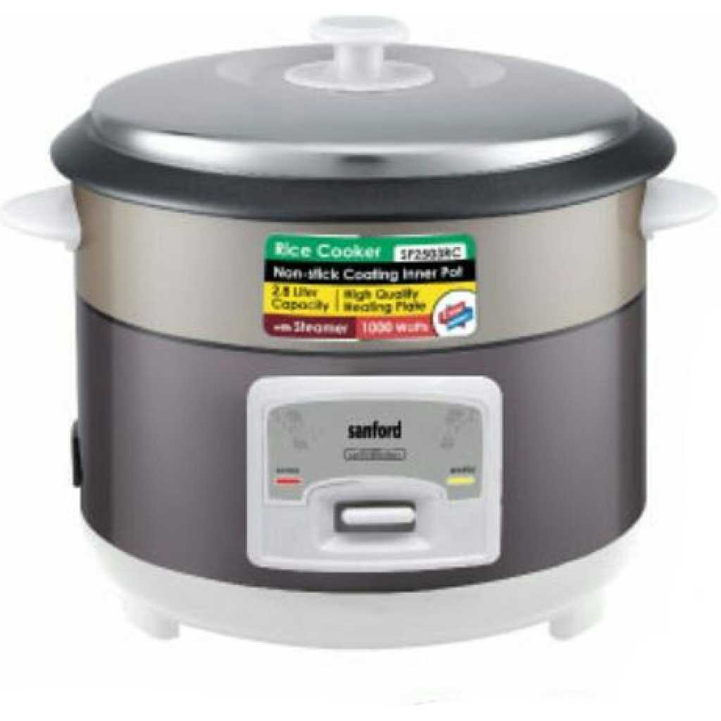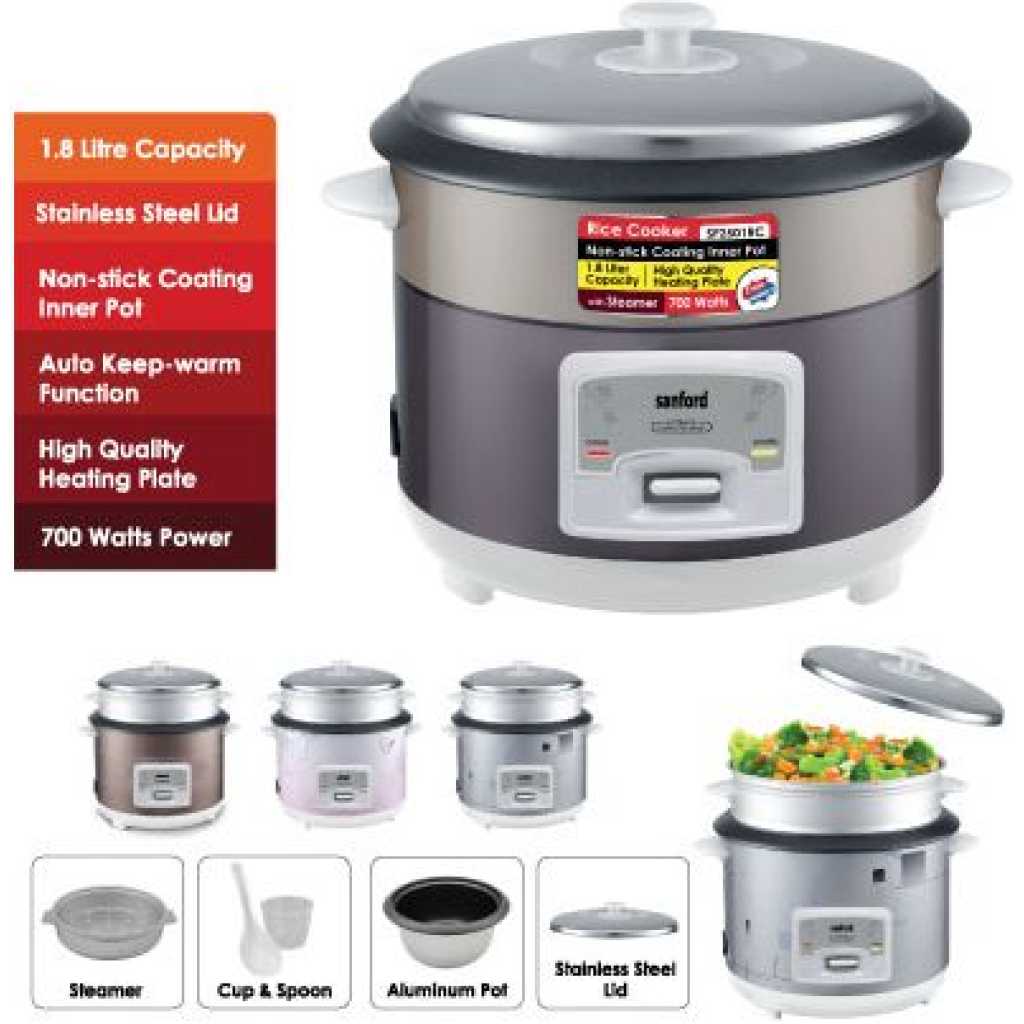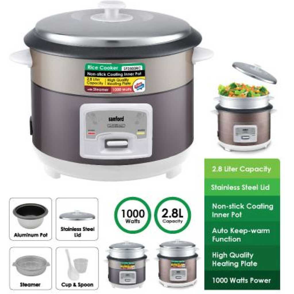 Sanford 2. 8Litre Rice Cooker Steamer Pot- Multi-colour . This cooker combines the advantages of rice cookers, pressure cookers, vacuum thermal pots, and electric stewing pots currently available in the market. It is safe to use, easy to operate, and extremely efficient. With the updated one-touch cooking features, well-built structure, and distinctive design, Ultimate Rice Cooker is considered to be an ideal kitchen helper for all modern families. Healthy Cooking Air tight cooker design not only preserves food nutrition and the original taste of food but also requires less oil during the cooking process which makes your diet much healthier. Safe and Eco-Friendly Neither open flame nor spillage during the cooking process – safe to cook even with children around. Powered by electricity – does not pollute air nor release excess hot air. High Efficiency Saving energy up to 60% and cutting operation time by 40% Easy To Clean Non-stick inner pot, sturdy outer pot, and stainless steel body. Key Features: Sanford 2. 8Litre Rice Cooker Steamer Pot- Multi-colour . 2.8 Litres Capacity Automatic Temperature Control Keep-warm Function Aluminium Alloy Pot Overflow and Scald Protection