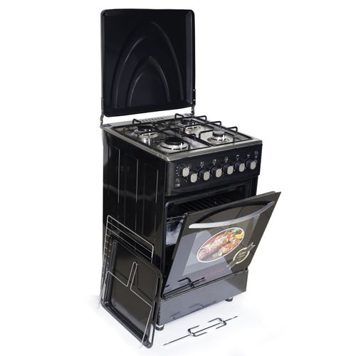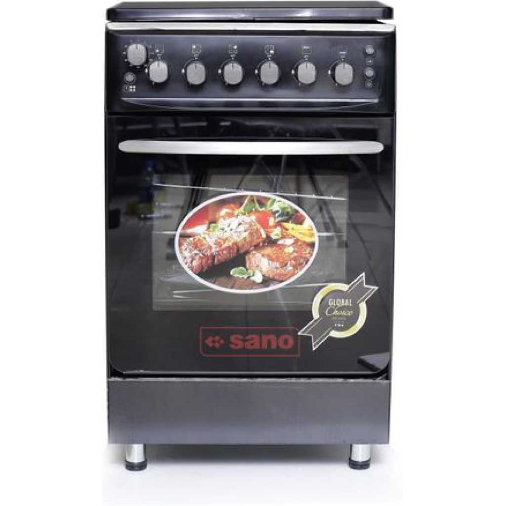 Sano 55X55 Full Gas Cooker With Rotisserie, Electric Oven & Grill, Auto Ignition, Oven Lamp, Timer, 2 Oven Trays - Black