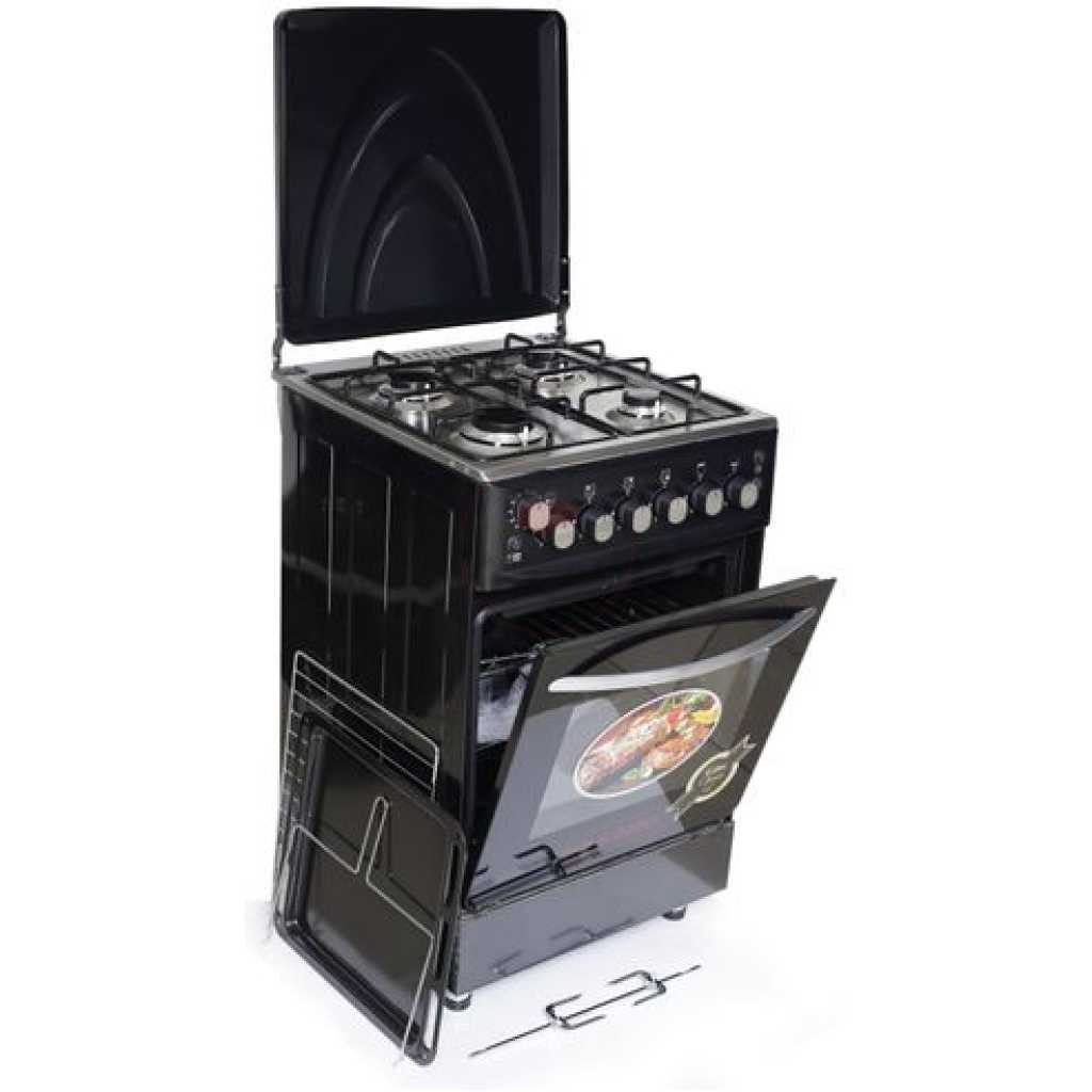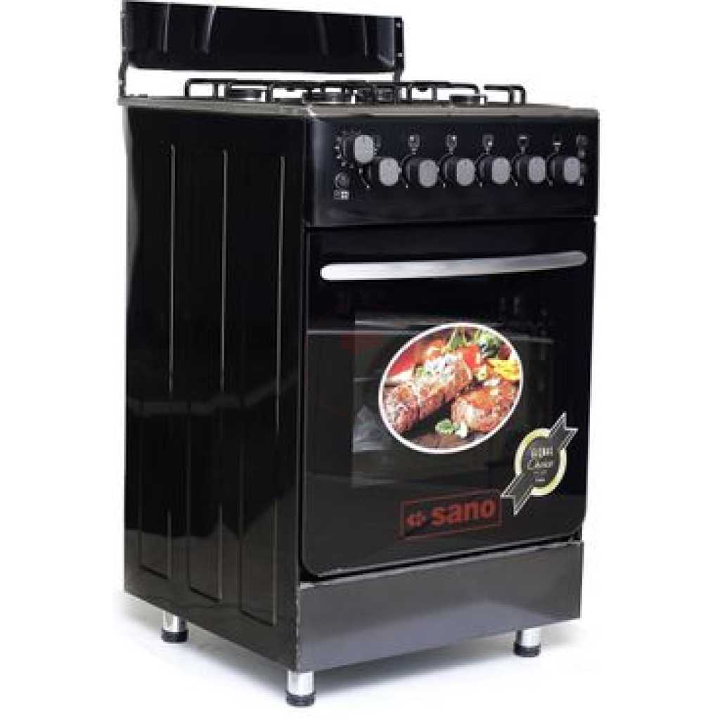 Sano 55X55 Full Gas Cooker With Rotisserie, Electric Oven & Grill, Auto Ignition, Oven Lamp, Timer, 2 Oven Trays – Black. Cooking is one of most inevitable things we do everyday. How much time you spend preparing the meal depends on your choice of cooker. Make your meals even faster and better with Gas Cooker. Cooking with this hob allows you make up to 4 different meals all at once without having to bother about time and stress. Make cooking a fun experience with this easy to use gas hob. With different fire regulation settings, cook any dish the right way with just the right amount of heat. Its portable and lightweight design makes it easy to fit any kitchen space. It’s a high quality and affordable cooker with 4 gas burners, wide double burner oven that offers big space for baking and grilling, rotisserie for roasting chicken, timer for easy baking, oven lamp, inbuilt gas regulator which saves you 30% gas, double glass oven door for safety and reducing heat loss in the oven, ignition, adjustable stands, stainless steel top, grill, oven trays. Comes with 2 YEARS GUARANTEE AND 3 YEARS WARRANTY . All our cookers are based on Germany technology made in TURKEY and assembled in UGANDA . Key Features: Sano 55X55 Full Gas Cooker With Rotisserie, Electric Oven & Grill, Auto Ignition, Oven Lamp, Timer, 2 Oven Trays – Black. 4 gas burner Rotisserie Double burner oven Timer Ignition Oven Lamp Double glass oven door Adjustable stands Grill 2 oven trays Stainless steel top Black Inbuilt gas regulator 2 YEARS GUARANTEE AND 3 YEARS WARRANTY. Saves 30% gas