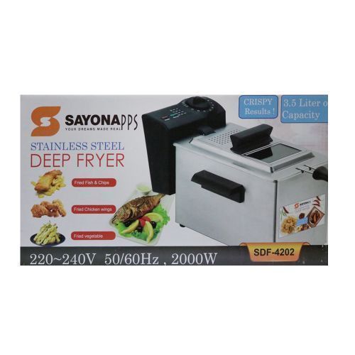 Sayona deep fryer is a single fryer with a non stick removable pan , lid, temperature light indicator, temperature control knob and power of 2000w Choose from a wide range of Unique products on TilyExpress and enjoy convenient and secure online shopping, delivery, guaranteed products and competitive pricing. Grab this deal and more from TilyExpress Uganda at unbeatable prices with doorstep delivery. Key Features: Capacity: 3L x 2 Stainless steel housing Adjustable thermostat withh light indicator Cool touch side handles Removable enamel oil contain Immersed oil heating element With 30 minutes mechanical timer With window and filter