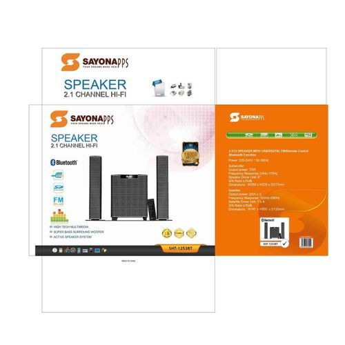 Key Features: Brand : Sayona Model Number : SHT-1253BT High Tech Multimedia Super Bass Surround Woofer Active Speaker System Number Of Channels : 3.1 Dvd Player / Recorder : Unavailable Are Batteries Needed To Power The Product Or Is This Product A Battery : No Is This A Dangerous Good Or A Hazardous Material, Substance Or Waste That Is Regulated For Transportation, Storage, And/Or Disposal? : No External Product Id Type : Ean-13