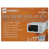 Key Features: Sayona microwave 20 liters New from Sayona Offen microwave / the all-new look Volume / 20L Timer thermostat control High quality limit 100% 6 levels of heat 700W / fast, economical and practical