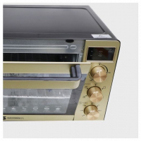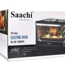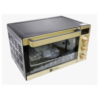 This 6-heater electric oven has an internal fan for excellent heat distribution. It contains an interior lamp, a rotating chicken grill, a Tefal tray, a steel clip, a thermostatic handle, flexible thermostat to control the temperature automatically. It is possible to operate the upper or lower heater separately or operate the two hybrids simultaneously and also contains an optical screen. It has Capacity of 35 liters