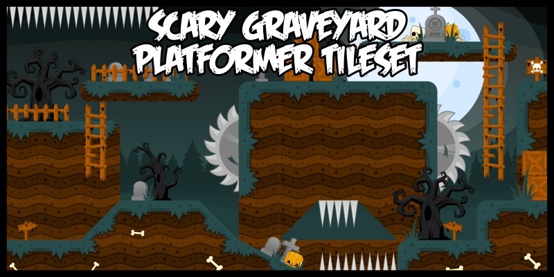 Scary Graveyard - Platformer Tileset. Platformer tileset pack for horror games