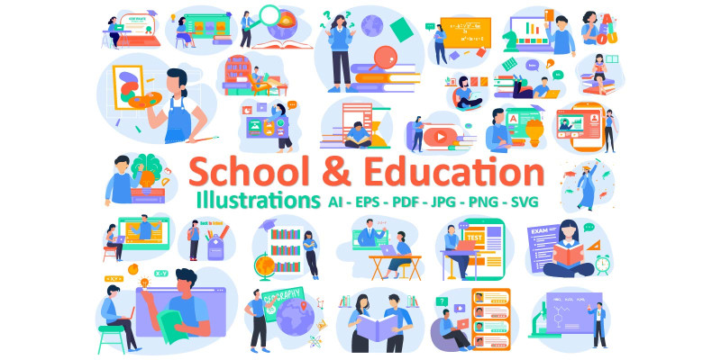 School And Education Illustrations. School & Education lay the foundation for lifelong learning, helping students develop knowledge, critical thinking, and essent