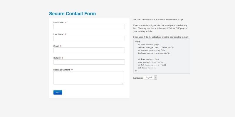 Secure Contact Form PHP Script. This contact form plugin allows you to add powerful ready-made contact forms to your site in few minutes!