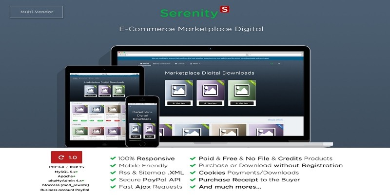 Serenity - Multi Vendor Marketplace Script. Marketplace for sharing scripts and examples for web development and designing or more.