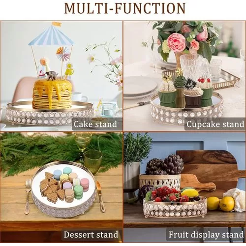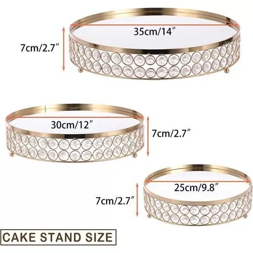 Key Features: ????Crystal Cake Stand Set – Three sizes, 10inch & 12inch & 14inch gorgeous cake stands.Different sizes available to meet your different needs. Package includes: 3 x Gold Round Cake Stands (Accessories are not included). ????Exquisite Craftsmanship – The cake stand was made of high quality metal with gold lacquer surface coating, 100% food safe.The cake stand is supported by 3 balls legs to ensure its stability on the table. ????Gorgeous & Elegant Design – The design of the mirror and crystal beads shines brightly. Use this stand to display cakes, cupcakes, cookies, desserts, pastries, candies, fruits and a variety of appetizers in a gorgeous and elegant way, making guests feel like they are being served with the utmost hospitality! ????Multi-scene Use – Perfect for all occasions. Such as weddings, afternoon tea, baby showers, graduations, Christmas, thanksgiving, housewarming, birthday parties, quinceanera, anniversary celebration, Valentine’s Day, company celebrations etc.These cake stands are also excellent choice for gifts!