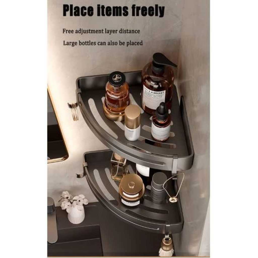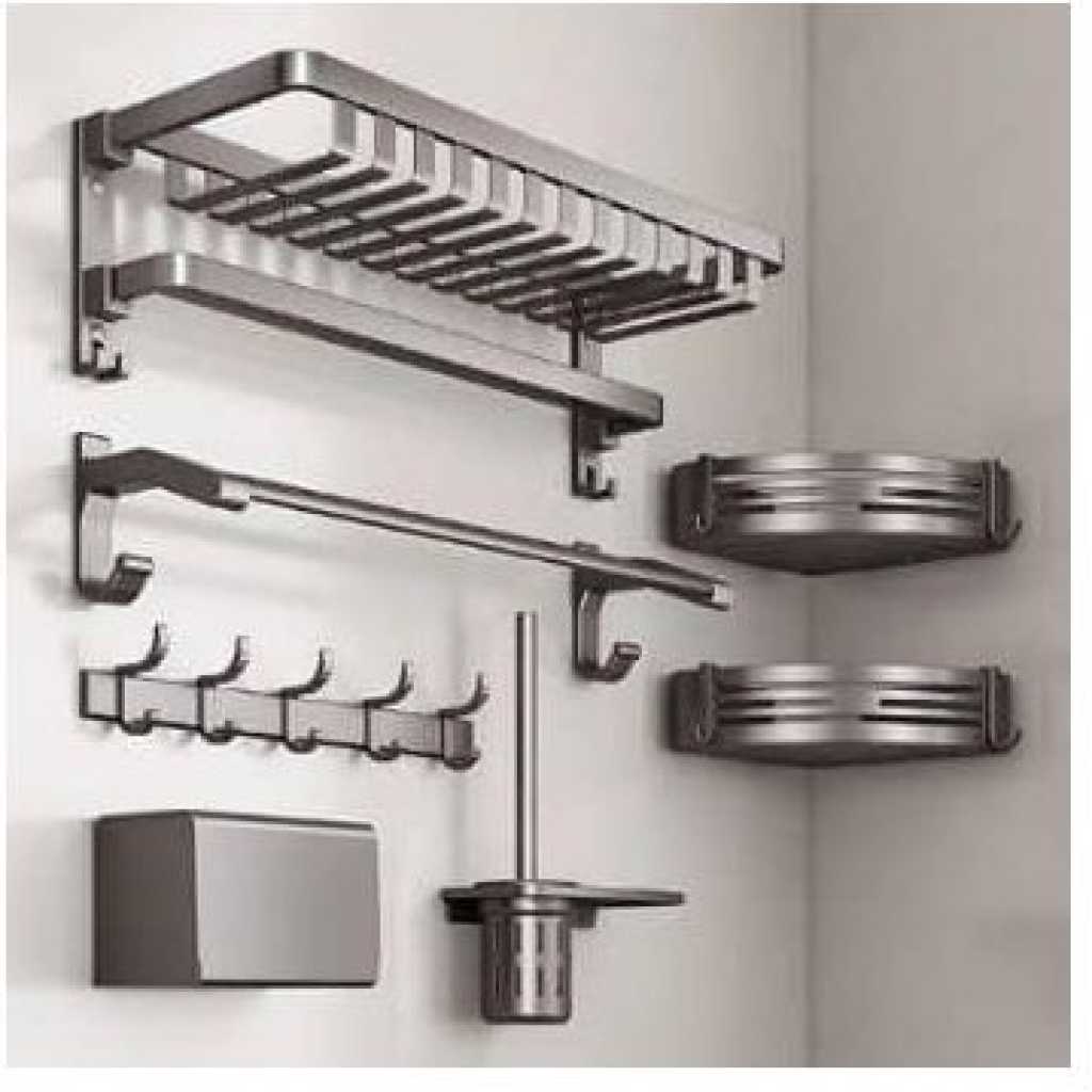 KK5 Bathroom Towel Rack Shelves Set of 6 – Foldable Towel Holder with Towel Bar & 9 racks for Shower Room Organizer Bathroom Storage Kitchen Towels Bathrobes Shower Caddy Brush Space Aluminum Wall Mount What You Get 1* Towel Shelf Basket 1* Towel Bar (Double rods) 2* Square Shower Corner Shelves 1* Toilet Brush with Holder 1* Toilet Paper Holder 1* Over the Door Holders Installation Accessories Features 1 Shower Caddy with Towel Bar 2 Aluminum Alloy shower caddy 3 Wall mounted Towel shelf 4 Large capacity shower caddy 5 Modern design bathroom shower shelf