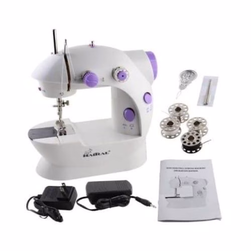 Mini Sewing Machine – White,Purple This portable mini sewing machine has a led light and foot pedal perfect for teens, beginners and sewing enthusiasts to do creative work for crafting, basic sewing and home decoration. Features Double switches, operated by on/off button or foot pedal Your sewing speed can be adjusted conveniently with auto-delutch bobbin winder, Easy reverse stitch button and precise thread tension, has light for precise sewing and built-in thread cutter.