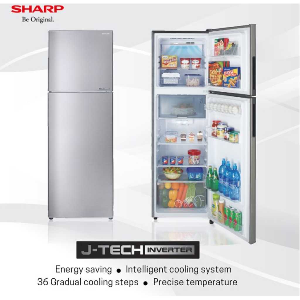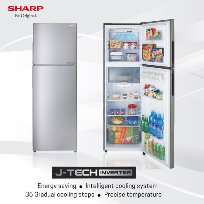Sharp 316 – Litres Fridge, SJ-RX34E-SL2 Double Door 316L Refrigerator – Silver. 2 Door Refrigerator refrigerator is a Top Freezer fridge that can store up to 255L. Use this fridge to store your fruits and veggies, and eggs using the egg tray, plus more items on the door shelves. Furthermore, this fridge uses Inverter technology so it’s more energy efficient. Capacity (-) Gross Capacity (L) 316 Net Capacity (L) – Total 255 Net Capacity (L) – Refrigerator 195 Net Capacity (L) – Freezer 60 Net Capacity (L) -Flexi Room NA General Features (-) J – Tech Inverter Technology Yes Plasmacluster Ion Technology NA ActiFresh Hybrid Cooling Technology NA Hybrid Cooling Technology NA Auto Ice Maker NA Temperature Control Internal AG CU/ Ag+ Nano Deodoriser Ag+ Nano Deodoriser LED Control Panel NA Extra Cool NA Express Freezing NA Child Lock NA Door Alarm NA Eco Mode Yes Refrigerant R-600a Karakuri Water Dispenser NA Flexi Room – Temperature Setting NA Flexi Room – Mode Setting NA Auto Crystal Clear Ice Cube Maker NA External Touch Control Panel (LED) NA Refrigerator (-) Egg Tray / Pocket Yes Utility Box / Pocket 2 Bottle Pocket 1 Smooth Slide Out Shelf NA Shelves – Tempered Glass 2 Shelves – Plastic NA Vegetable Shelf 1 Vegetable & Fruit Case 1 2 – Way Fresh Room NA Fresh Case 1 (2-Way) Lighting – LED Yes Lighting – Bulb NA Door Pocket 2 Bottle Pocket – Fruit & Vegetable Crisper NA Bottle Pocket – Fresh Case NA Water Tank – AG+ Coasted Water Tank (1.8L) For Auto Ice Making NA Water Tank – AG+ Coasted Water Tank (4L) For Auto Ice Making NA Refrigerator Shelf – Tempered Glass Shelf NA Refrigerator Shelf – 9 – Way Flexible Shelf NA Refrigerator Shelf – Vegetable Case NA Freezer (-) Ice Storage Box 1 Twist Ice Making Tray Yes Ice Tray Yes Mega Freezer NA Ice Maker & Box NA Freezer Organizer NA Door Pocket 2 Shelves 1 Drawer NA Freezer Case NA Freezer Shelf NA Ice Storage Box – Large NA Others (Refrig) (-) Door 2 Cooling System Fan Dimension (mm) – W x H x D 545 x 1700 x 625 Handle Recessed Colours Available – Glass NA Colours Available – Metal SL – Silver Energy Saving Class (Singapore) 3 Ticks Key Features: Sharp 316 – Litres Fridge, SJ-RX34E-SL2 Double Door 316L Refrigerator – Silver. J-Tech Inverter Tempered Glass Shelf AG+Nano Deodorizer LED Lighting 2-way Fresh Case Fan Cooling System Energy Efficiency Rating 3 Ticks