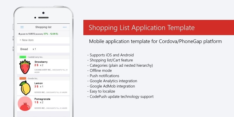 Shopping List App - Cordova Template. A complete jump-start kit for building shopping list/cart application