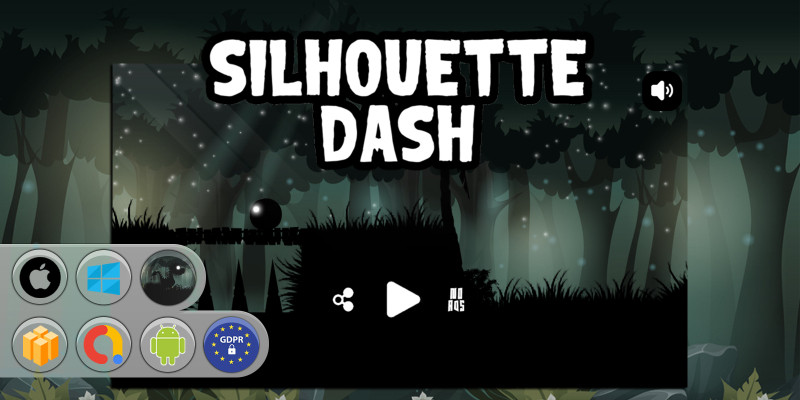 Silhouette Dash - Buildbox Template. Dash through shadows, vanish to dodge traps, and test your timing in this stylish endless runner.