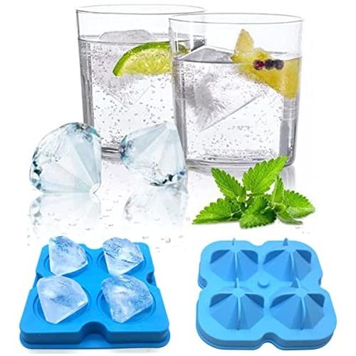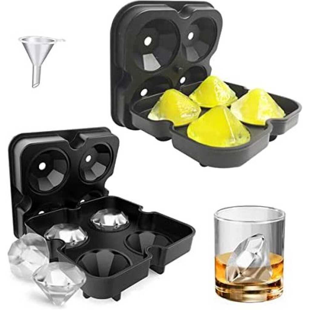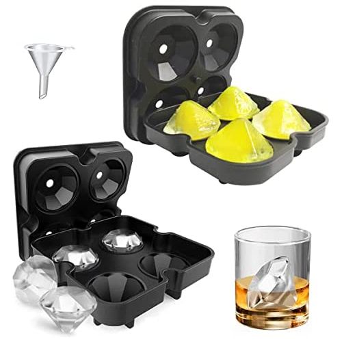 Key Features: Silicone 4 PC Diamond Ice Cube Mould Tray For Whisky Cocktail Water Juice. Ice cube tray Color: Black, Material: Silicone 【MULTIPLE USES & DIY SNACKS】: Our diamond ice cube molds are perfect for chilling all kinds of craft drinks (bourbon, cocktail, whiskey, scotch, beer, beverage, juice, etc.). Ideal for making healthy and diverse novelty ice cubes by putting different fruits into each ice tray. You can also use them to make your special snacks (puddings, chocolate, ice-lolly, etc.). Besides water, you can fill the ice mold with milk, coffee, and juice to make different flavors of ice cubes. 【BPA FREE & DURABLE & RESUABLE】: These funny cube ice molds are made of premium food-grade silicone, 100% ensuring absolute food safety. The temperature tolerance is from -40℃(-40℉) to 230℃(446℉). It is safe to put these ice cube molds & trays in the microwave oven and dishwasher. 【EASY TO USE & RELEASE】: These silicone ice cube trays are non-stick, stackable, and flexible. Just fill ice trays with water and close the upper and lower tray tightly, then use the small funnel to fill up the water to the top and put ice molds in the freezer for around 6-8 hours. After freezing, twisting, and pushing the bottom of the molds, the novelty diamond shapes whiskey ice cubes can be easily removed. 【WHAT YOU WILL GET】: 2 sets of diamond ice molds + 1pc funnel. Making 4pcs big diamond ice cubes per mold, so you can make 8pcs diamond-shaped ice cubes for whiskey at one time. Ideal gift choice for you.
