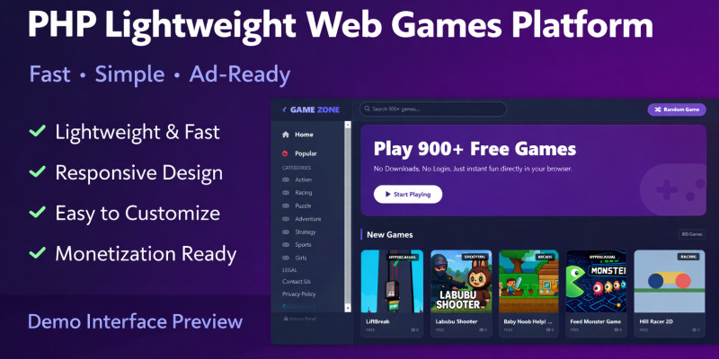 Simple PHP Web Games Framework. A lightweight PHP web games platform with simple demo games, built from scratch for learning and monetization.