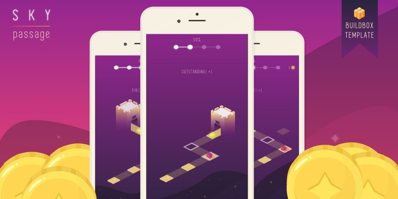 Sky Passage - Buildbox Template. Stylish game with original gameplay with beautiful graphics