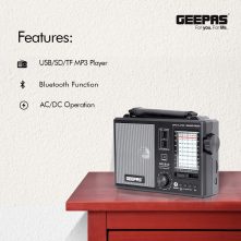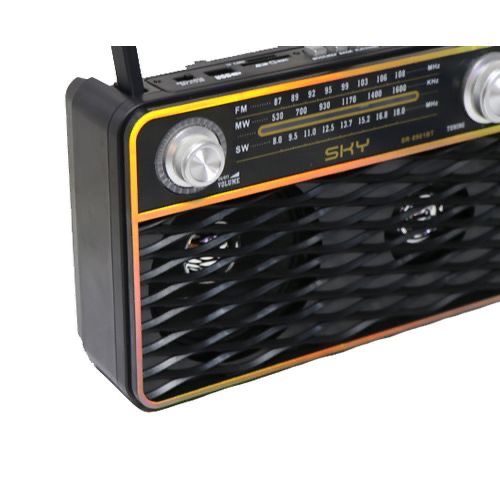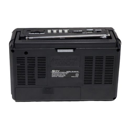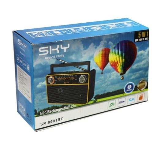 Key Features: Brand: Sky USB and TF Card reader 3 band(FM-MW-SW) Bluetooth Color:black. Model number:SR-8901BT High gain quality output. High power output. Long telescopic antenna. Handle Bar