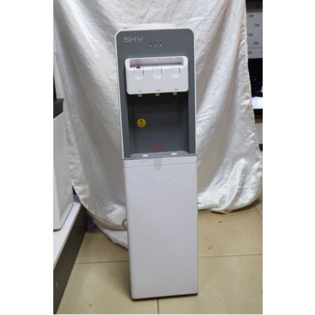 Sky Water Dispenser SWD4888 Hot Normal & Cold – Silver. Water dispenser with covered door storage. It has golden glass finished door which makes its attractive look and mix with other furniture. It has three mode; hot, normal & cold. It uses Ac 220v/50hz, heating power:500w, With heating capacity :greater than or equal to 90degree celsius,5.0l/h. Consume cooling power:85w with cooling capacity: less than or equal to 10 degree celsius,2.0l/h. It is Compressor cooling and water tank I made of stainless steel. Its required very limited space of dimension(mm):300x325x1010 to Install. It has shock proof bs plug with 1 Year Warrantee. Key Features: Sky Water Dispenser SWD4888 Hot Normal & Cold – Silver. Covered Doors. Shock Proof BS Plug. Glass Finishing Doors. Hot, Normal & Cold Three Tab Dispenser. Light weight. Ac 220v/50hz. With Storage. Cooling Power:85w. Cooling Capacity :less Than or Equal to 10 Degree. Stainless Steel Tank. Compressor Cooling.