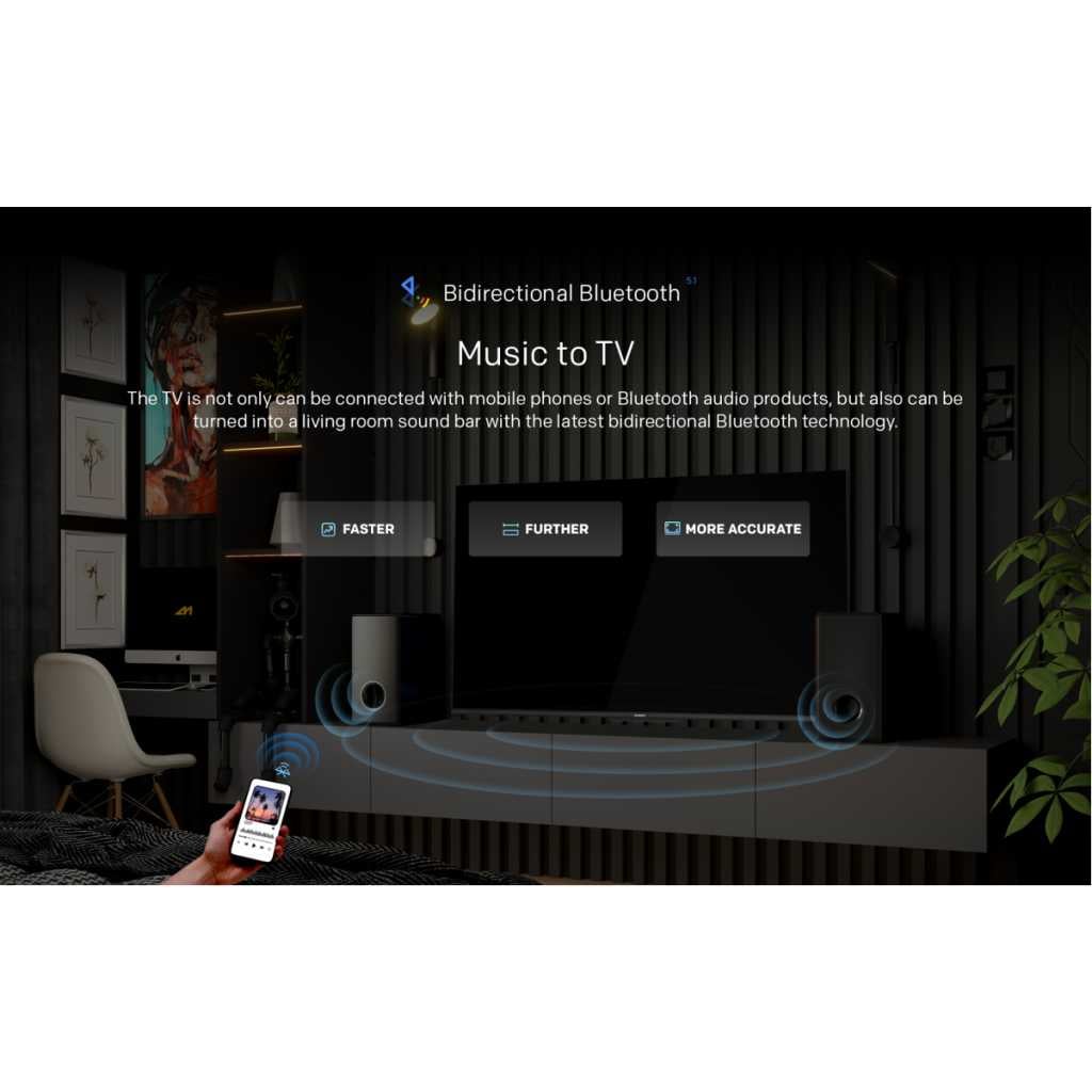 Skyworth 55-Inch TV SUE9350; UHD 4K Android Smart, USB, HDMI, Bluetooth, WiFi, LAN, Inbuilt Free To Air Decoder – Black. Backlight type direct full-screen refresh frequency 50/60hz game mode hdr10 hdr10+ hlg Surround equalizer dts studio sound dolby digital(decoder) dolby digital plus(decoder) audio output power(rms) 10w + 10w subwoofer power(rms) n/a main speaker direction bottom speaker number 2 Netflix Prime Video youtube hdr Open Browser cocoa service app store/Content Store Google Store others tbd Chromecast TV Receiving System Pal-Bg/I/Dk Secam-Bg/Dk Ntsc-M Nicam A2 Dvb-T/T2 Dvb-C Subtitle Teletext Av1 Video Appendix Audio Appendix Photo Appendix Cec(Consumer Electronics Control) Arc (Audio Return Channel) Osd Language Appendix Parent Control(Child Lock) Epg Channel List Faivorate Channel List Channel Editot Time Shift Ad(Audio Description) Fast Boot Hotel Mode Update Software By Internet Update Software By Over-Air Working frequency 2.4g wake on lan/wake on wlan wifi support type 2t2r version 5.0 audio transmission input&output tuner 1 HDMI 3(2.0) USB 2(2.0) lan 1 composite 1(3.5mm) digital audio output (coaxial & optical) 1(optical) remote control model number 89# remote control type ir+bt Explore the Infinity. 3rd Generation Infinity Screen technology brings you cinematic sight. With HDMI 2.0b ALLM low-latency technology, it makes you play games smoothly. Dolby Audio & DTS Studio Sound puts you in the middle of the action with multidimensional surround sound that seems to flow all around you. Key Features: Skyworth 55-Inch TV 55SUE9350; UHD 4K Android Smart, USB, HDMI, Bluetooth, WiFi, LAN, Inbuilt Free To Air Decoder – Black. 4K UHD Android 10 Bluetooth 5.0 Boundless Screen Chromecast Built-in Color Gamut 28% Google Play Store HDMI CEC & ARC