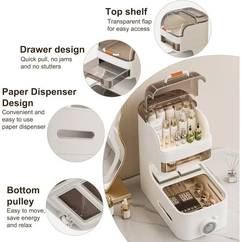 Key Features: Slim and Space-Saving Design: This cabinet’s narrow profile is perfect for utilizing tight spaces, like between furniture or in corners. It efficiently saves space while providing convenient storage solutions. Versatile Multi-Functional Storage: Ideal for storing a variety of items, this cabinet can hold kitchen essentials like utensils, knives, and small appliances, as well as bedroom items such as cosmetics and skincare products, all within easy reach. Safe and Odorless Material: Made from safe, odor-free materials, this cabinet is suitable for bedside use, ensuring that it won’t emit any unpleasant smells. It’s perfect for storing personal items in the bedroom or near the vanity. Convenient Mobility with Built-In Wheels: The cabinet is equipped with small wheels, allowing for easy placement and movement throughout the home. Whether in the living room for books and snacks or the bathroom for toiletries, it fits seamlessly into any space. Easy-Access Tissue Dispenser and Multi-Layer Storage: The flip-top and drawer design provide multiple storage layers for organized and easy access to your items. The built-in tissue dispenser makes it convenient to grab tissues, whether in the bathroom or any other part of the home.