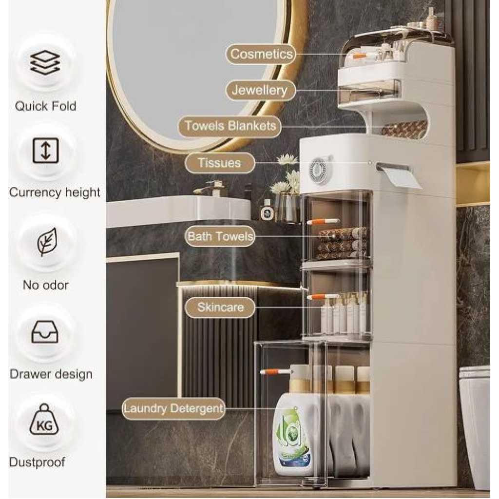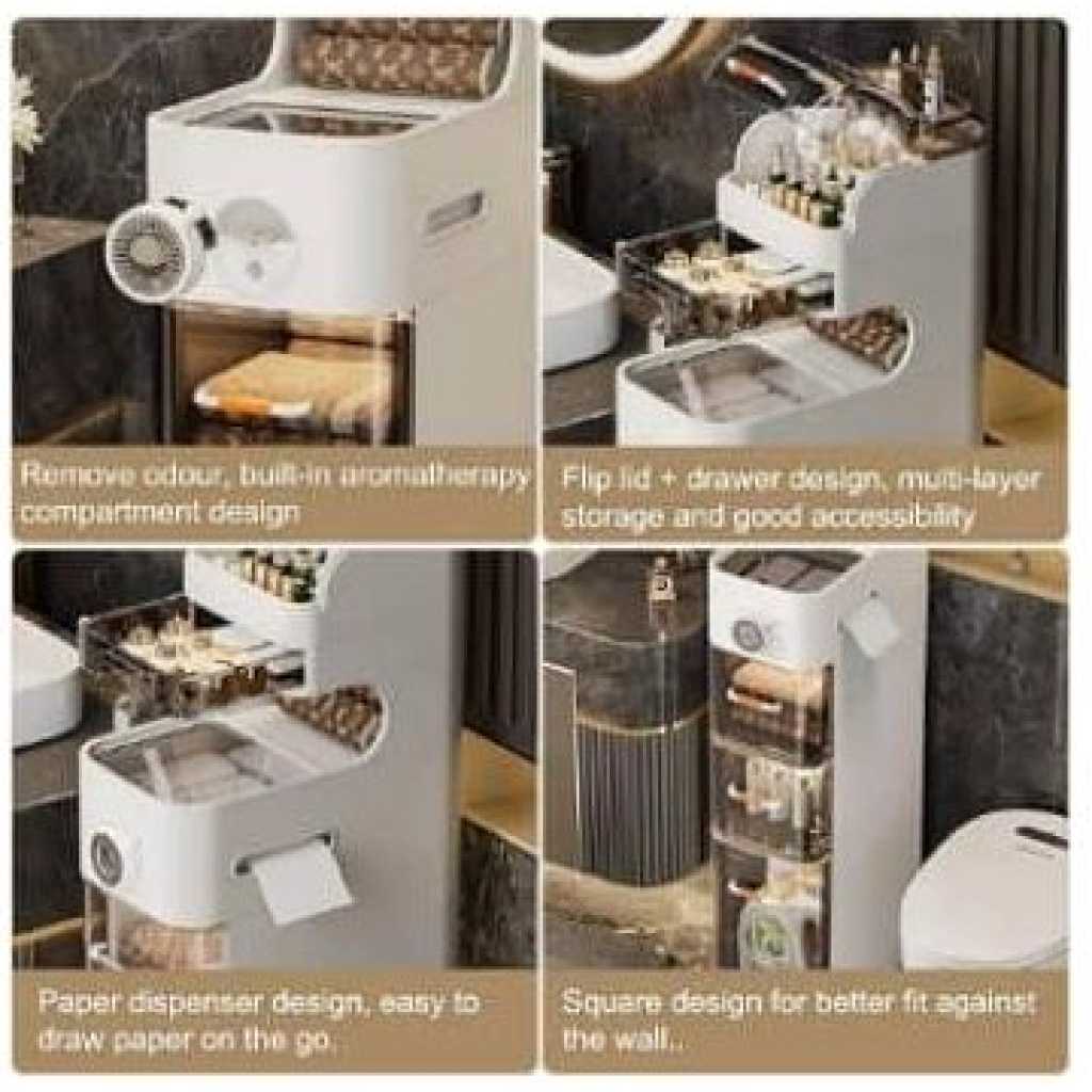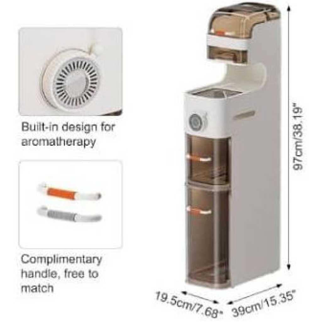 narrow bathroom storage cabinet color: White Material: PP+HIPS+PET Function: 1. There is a storage box for placing aromatherapy 2. There is a special paper storage box and a paper outlet 3. There are different layer heights, which can be placed on the desktop or the ground. 4. Visual appearance, easy to observe and pick up 5. The product is narrow and saves space. Applicable environment: kitchen, bathroom, bedroom Size:2 layers storage cabinet (97*39*19.5cm ) 【For Small Space】: Out of the box, making your use more convenient and fast. Don’t neglect the corner space of your bathroom! Max out storage space and keep your everyday essentials at your fingertips by opting for this slimline freestanding cabinet.really narrow but tall cabinet for your tiny bathroom. The cross-sectional area is small and does not take up much floor space. Make the most of the space in your home. 【Attentive Design】: The freestanding cabinet is made of high quality polypropylene and built in a solid structure with high load capacity,do not worry about moisture, waterproof and dustproof;Large flap design on the top for easy access to items; Smooth edge, smooth pulling; Easy to use with an opening on the side for tissue.Built-in aromatherapy grid design and easy to disassemble and assemble, eliminates odors and makes the bathroom fresher 【Durability Meets Elegance】Crafted from high-quality plastic, this bathroom storage cabinet is built to withstand daily use and remain a reliable companion for years to come. Its sleek and stylish appearance adds a touch of elegance to your bathroom decor, enhancing the overall ambiance. 【Widely Use】The bathroom floor cabinet can be used as bathroom cabinet for storing toiletries, cosmetics, towels, etc. Also, it can be used as kitchen storage cabinets for food, spices, tableware, etc. As a bedroom bedside table for skin care products, watches, jewelry, etc. As a living room side cabinet for books, remote controls, toys, pet supplies, etc.
