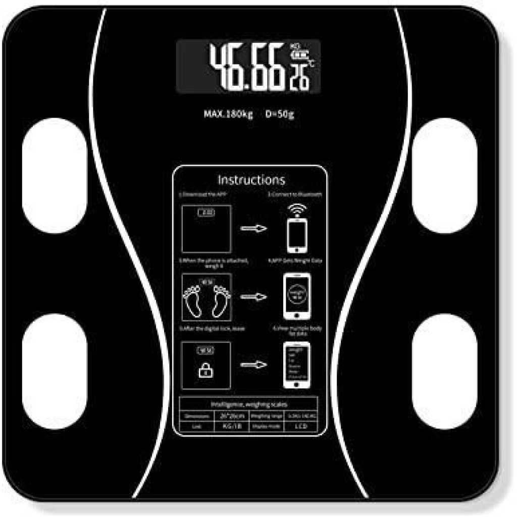 Key Features: Smart Digital Weighing Scale With Bluetooth and WiFi, USB, Body Fat, BMI (Black), White Larger platform, more stable-Explosion proof tempered glass, and ABS environment-friendly base material surface. It is ultra-thin sleek looking just 0.9 inches thick and large enough 10.24in x 10.24in, which makes it more comfortable and safer to stand on, and more clearly to see the large LCD display of 2.87in. x 1.10 inch. Easy to use-Works with Bluetooth on iOS and Android. You can weigh yourself anytime for the data will sync to the app once your phone and scale connect again. Easily change weight units through the app (lb, kg, st). Auto-Off: 30 seconds High accuracy -4 sensors with the latest technology deliver accurate weight measurements up to 396 lbs,180kg in 0.2 lb,0.05kg increments. Enjoy step-on technology, Can charge with USB or 2 x AA batteries. Immersive App Experience: Sync data with other fitness apps such as Apple Health, Samsung Health, Google Fit, and Fitbit. With the free VeSync app, you can set goals and view progress graphs. Rest assured, VeSync will not share your personal information with any third parties One Scale for the Whole Family: With unlimited user profiles for family and friends, this scale is designed with everyone in mind! Please note this scale is not intended for use by professional athletes