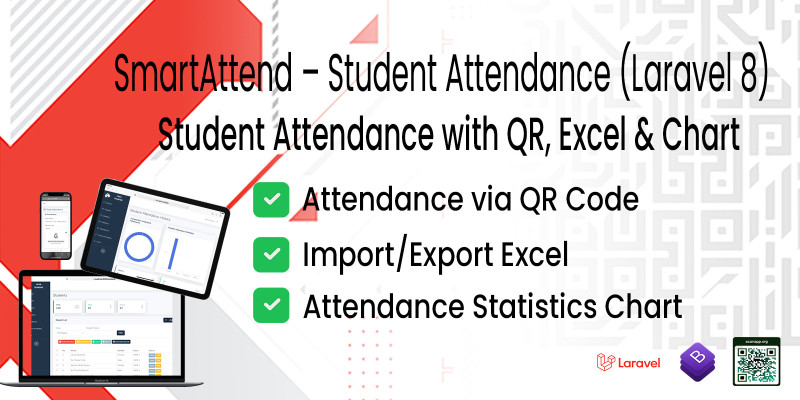 SmartAttend – Student Attendance Laravel 8. Laravel 8-based student attendance system with QR code, Excel import/export, and charts. Ideal for schools and training centers.