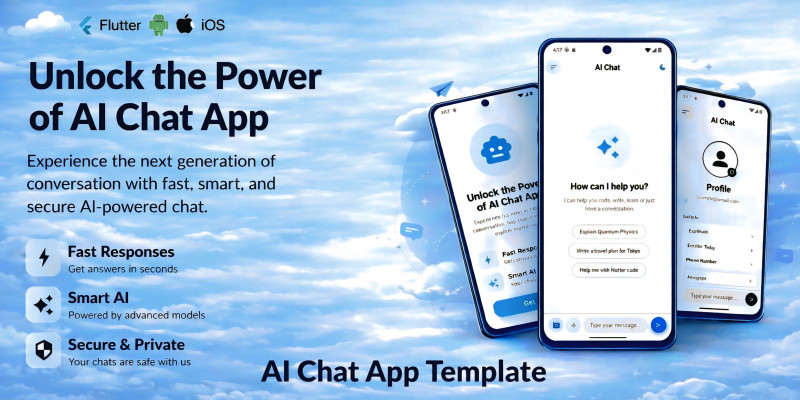 SmartGenie - AI Chat App Flutter UI Template. Premium Flutter AI Chat UI Kit. Modern & clean UI for Android/iOS. Ready for API integration (OpenAI/Gemini).