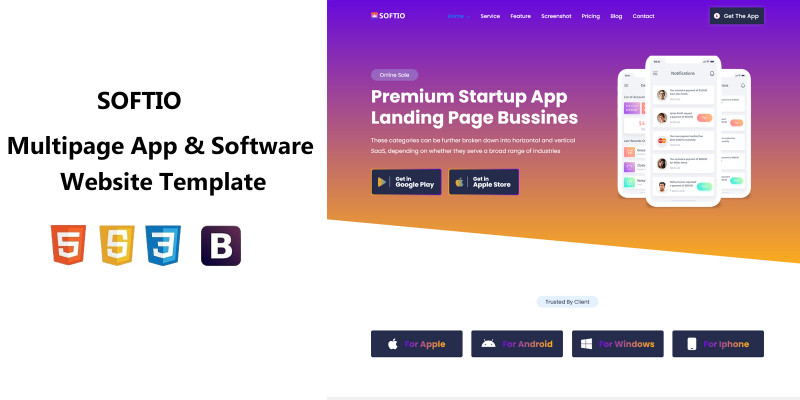 Softio - Landing Pge. Multipurpose App & Software Product Landing Page Template