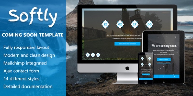 Softly - Coming Soon HTML Template. Softly is a One Page Responsive Coming Soon Template.