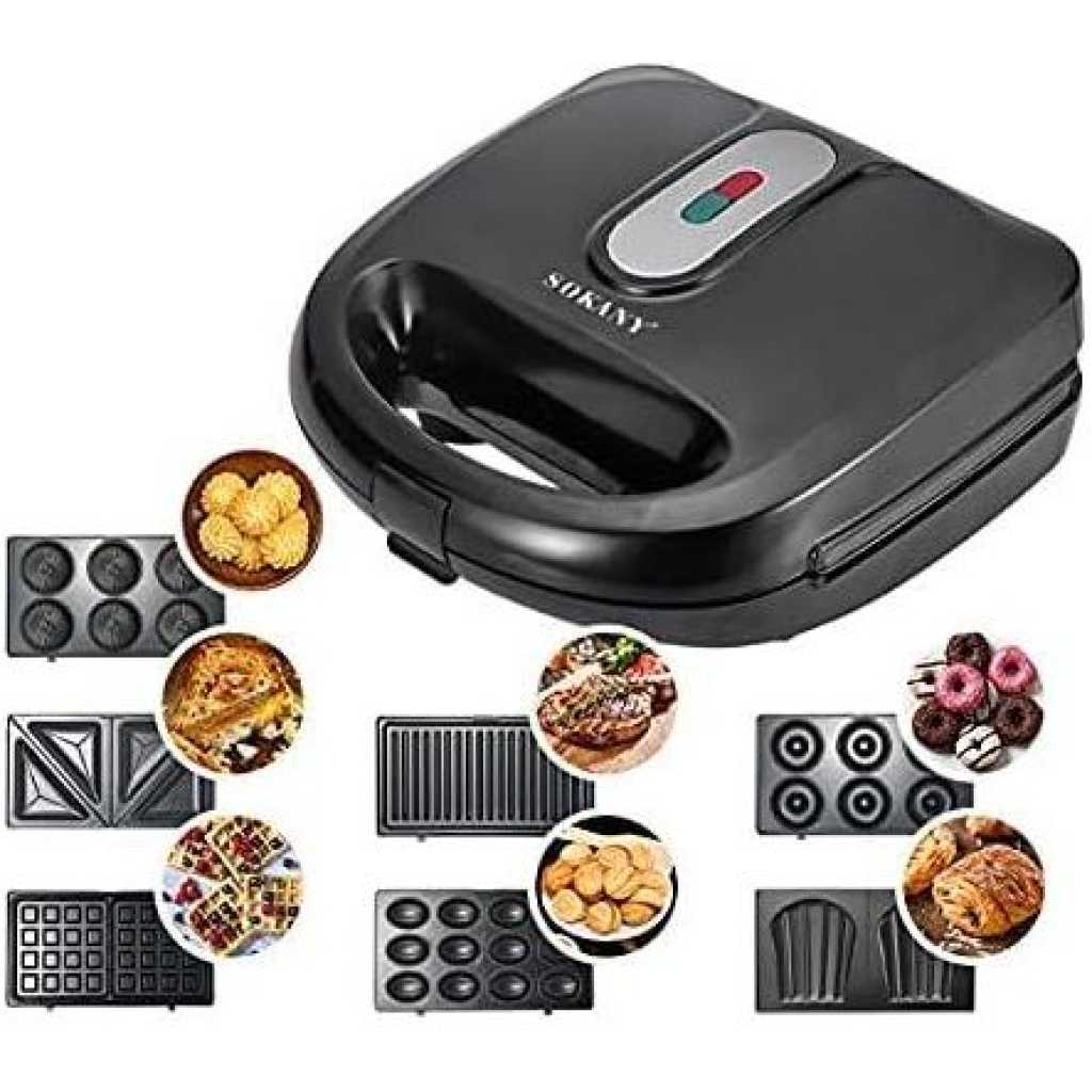 Sokany Waffles Sandwich Maker set is versatile with 7 different functions for delicious, non-stick surface. Designed as per the prevailing industry standards, it scores high on the aspect of utility. The quality material used in its construction makes it durable. This multipurpose Waffles And Sandwich Maker comes with 7 distinct molds for preparing delectable waffles, sandwiches, and more. With its high-power double-sided heating, the food becomes crispy on the exterior and tender on the inside. It is made of sturdy materials to ensure lasting durability. This is compact and very easy to use for effortless operation. High-Power Double-Sided Heating The Sandwich Maker delivers the tastiest sandwiches and waffles due to its double-sided heating feature that ensures that your food becomes crispy on the exterior and tender on the inside. Hassle-Free Cleaning The Waffle and Sandwich Maker features detachable plates for easy and convenient use. In addition, the non-stick grid ensures that after your food is made, it is easy to clean it up for a hassle-free experience. Key Features: Makes 7 kinds of snacks in `1 set Power is 750watts Easy to clean. Detachable plates High power double sided heating Great performance Low power consumption