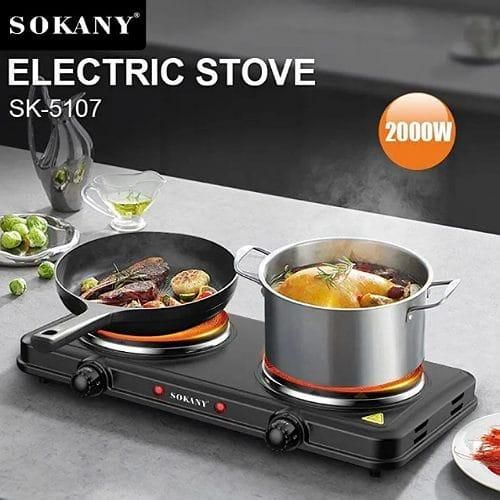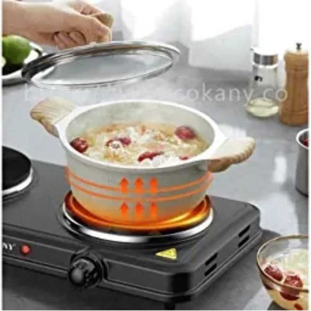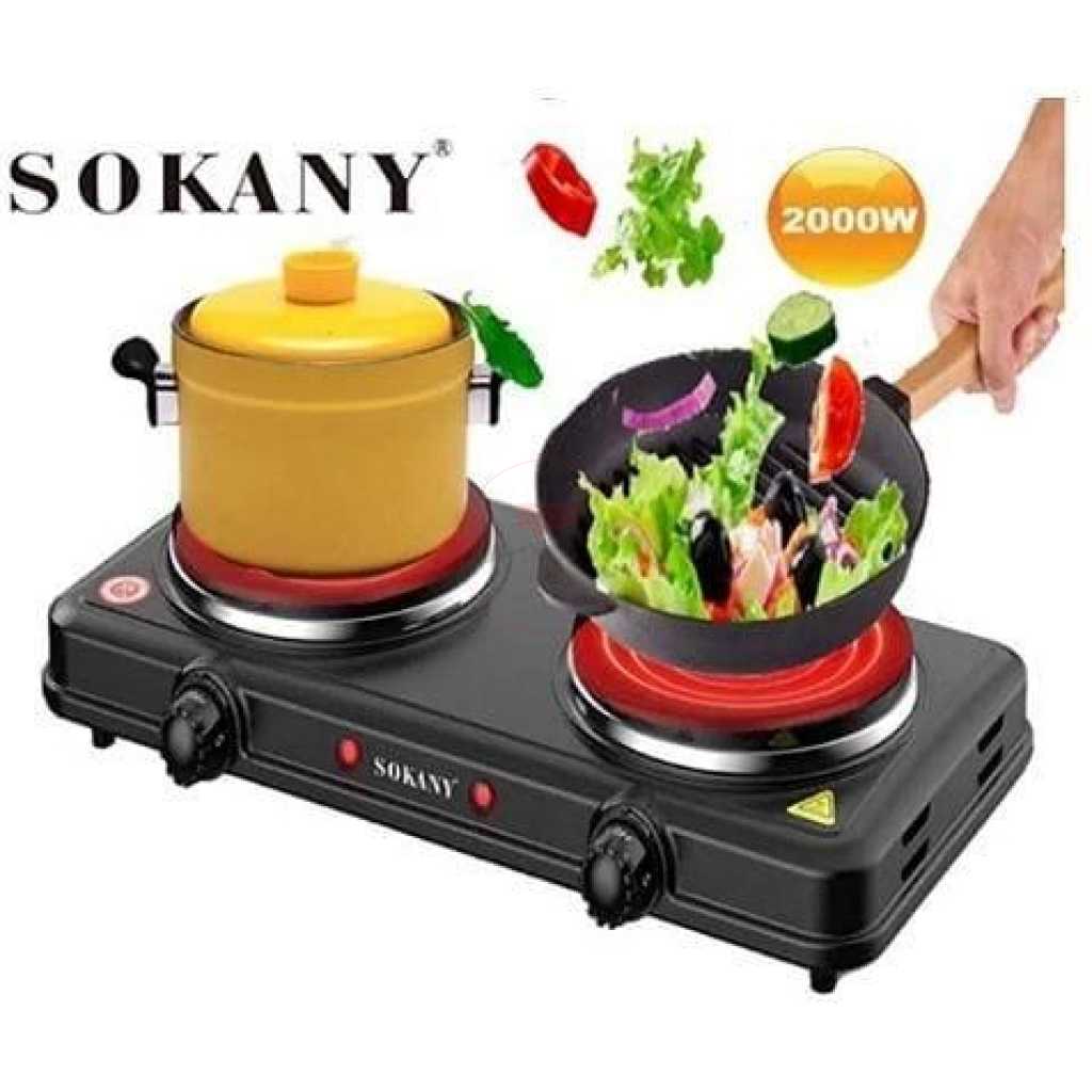 Sokany Eye Flat Dual Electric Stove High Fire Power 5 Gear Temperature Adjustment Hot Plate Cooker- Black. There’s no need to sacrifice your favorite home-cooked meals simply because you choose to explore or travel! With this sleek Burner Cooktop, you can prepare those home-cooked meals with ease no matter where you are, so long as you have an electrical outlet, you are ready to cook up a storm! This ultra-lightweight and compact cooktop brings the power of your stove to any desired location. An essential product for every kitchen and home Now need not be worried in case the LPG gas is exhausted in between cooking your meal. It is beneficial for housewives, working It is an alternative to cooking gas having 1500 watts of power, and works on a normal 6 amperes socket. It is suitable with aluminum, and steel utensils,t is safe, provides faster heating, and is for household cooking. Also, the strong metal body is durable unlike induction cookers Key Features: Sokany Eye Flat Dual Electric Stove High Fire Power 5 Gear Temperature Adjustment Hot Plate Cooker- Black. Two cooking plate Two operating on/off indicator light Various heat operation Two auto-thermostat Overheat protection Non-stick coating Power: 1000-1500W Voltage :220-240V~50/60Hz Stainless steel panel Plate size: 155+185mm; Electric hot plate with 0.4mm thickness;