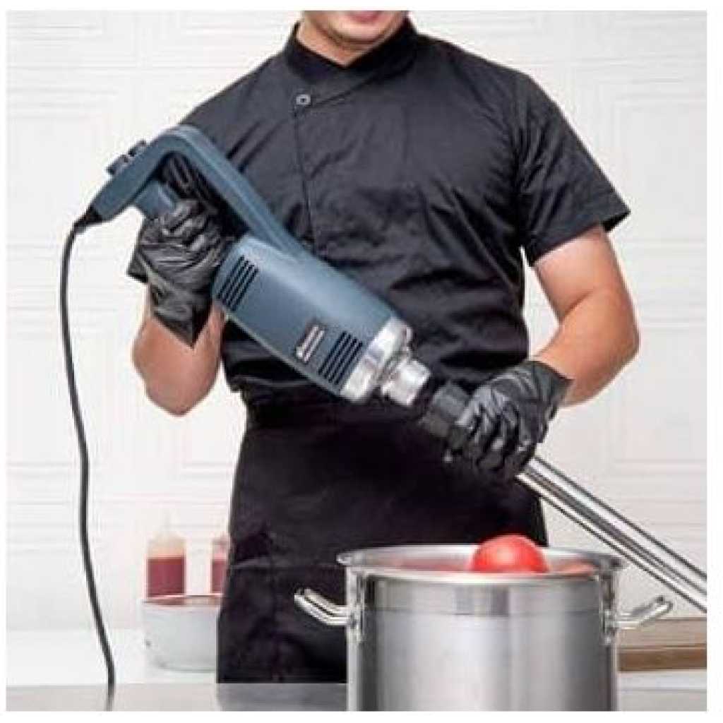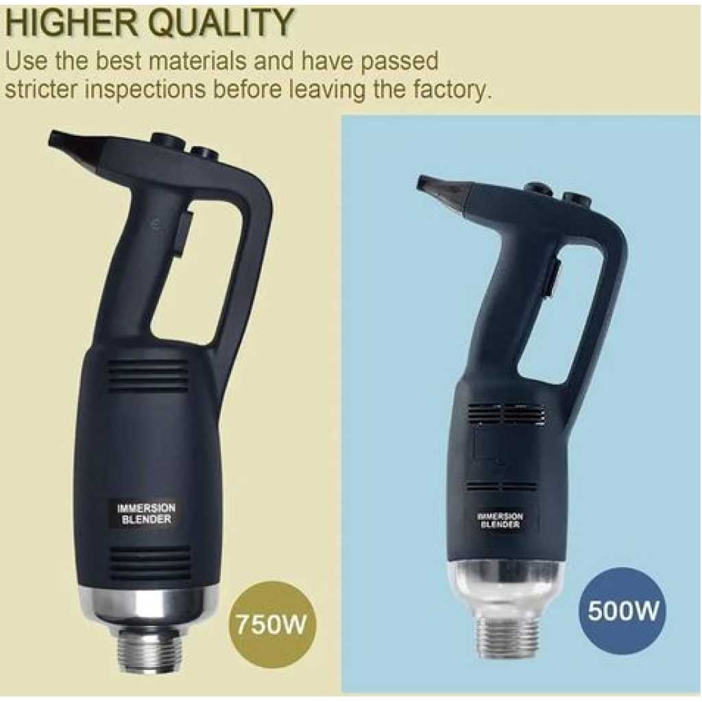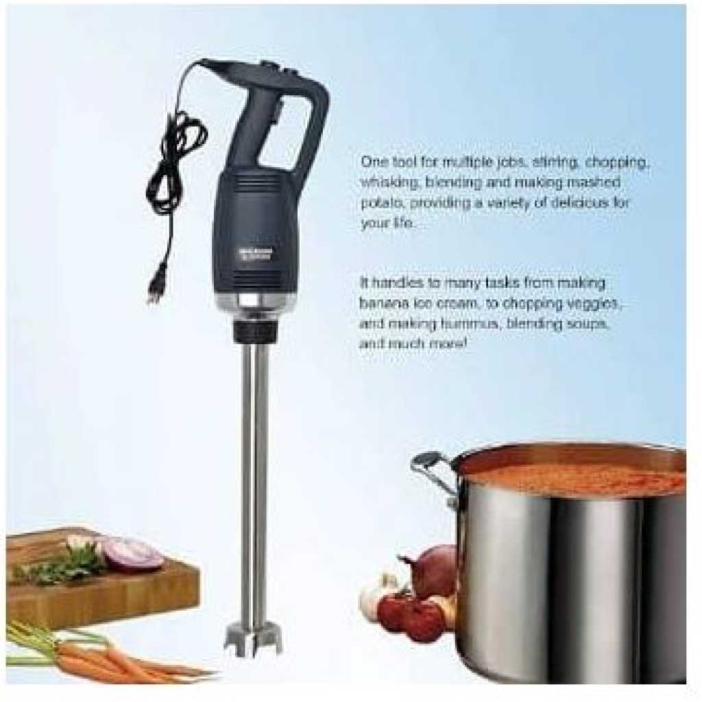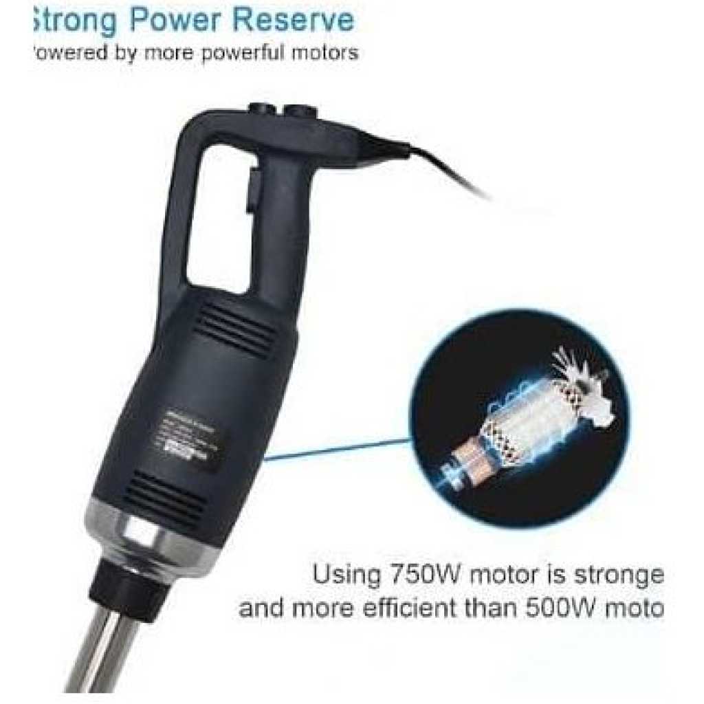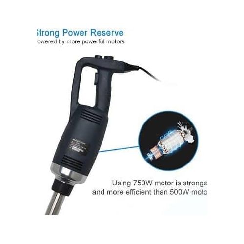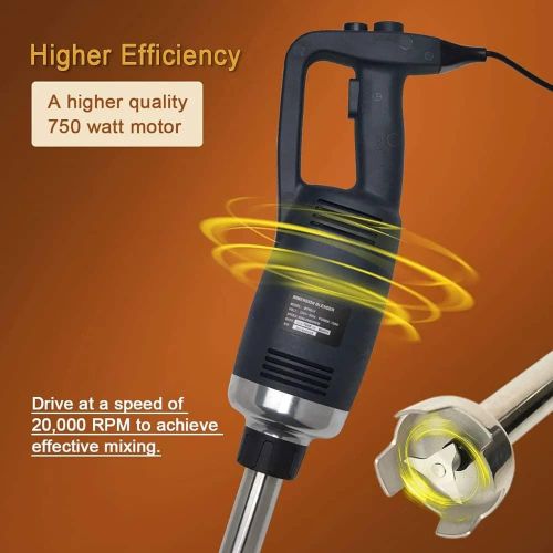 This new product, which is made of heavy-duty stainless steel and plastic, is perfect for making soup, sauces, and batters in a short time. (with 30-Gallon capacity) It is equipped with comfortable rubble handle and another hand grip for safely and conveniently operation. With the powerful motor(1-horsepower, 750W).The rotate speed can reach up to 8000-20000 RPM. It has a completely sealed 14-inch stainless steel shaft that can be easily removed and keep people safe during cleaning. The sharp stainless steel blade allows a continuous operation without getting stuck. specification: Voltage:110~120V/60Hz Power:750W Rotate Speed:8000-20000RPM (adjustable) Weight:2.81KG Size of body: 39.6cm * 11.6cm Diameter of stick: 3.5cm Length of stick: 35cm To ensure the safe operation of the blender. Be careful of the sharp blade. -Do not touch the blade or put your hands under the blender when you are ready to start up the machine or when it is under working condition. Please contact us if you have any question, we will offer you the best service and solve the problem ASAP. Thank you so much.Please contact us if you have any question, we will offer you the best service and solve the problem ASAP. Thank you so much. P.S. Recently some customers reflect that the blender didn’t work. Because they have not press the safety switch. You need to press the safety switch button and “ON” button simultaneously to get the machine to start working.- Key Features: This new product, which is made of heavy-duty stainless steel and plastic, is perfect for making soup, sauces and batters in a short time.(with 15-Gallon capacity) Equipped with comfortable rubble handle and another hand grip for safe and convenient operation. The rotate speed can reach up to 8000-20000 RPM. The sharp stainless steel blade allows a continuous hand-free operation without getting stuck. Providing high quality products and excellent service has always been our top priority. If you have any questions, feel free to contact us for help.