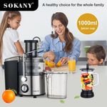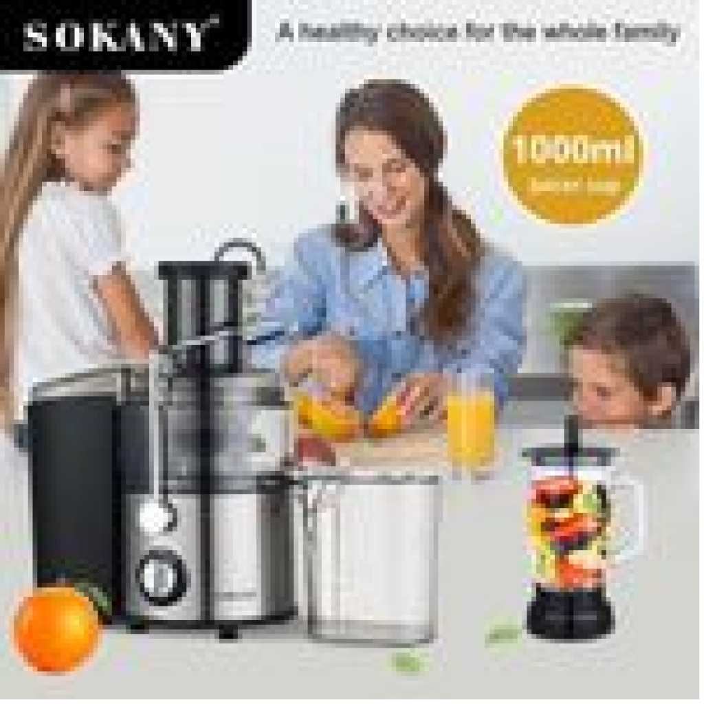 Product description The Professional Juice Extractor is a premium appliance that delivers unparalleled performance and high-quality juicing. Its stainless steel microfilter ensures maximum yield by extracting every last drop of juice from your fruits and vegetables. The large feed chute allows you to easily load whole fruits and vegetables without having to cut them first, saving you time. The innovative dial offers three speed settings, allowing you to customize the juicing experience depending on the consistency of the product you’re juicing. The removable parts are dishwasher safe and can be easily cleaned under running water. This juicer truly makes healthy living simple. Simplicity is the best, originality is the best! We will launch this SOKANY electric juice extractor because we have a commitment to let you recover the original taste of fresh fruit without losing nutrition! That’s why you must have one. The 800-watt electric juicer can bring you better health. Our electric citrus juicer can extract useful juice for you and your family in a short time, making SOKANY the only equipment you need for your fruit and vegetable juicer. Stainless Steel Blades Strong stainless steel blades work fast for effortless blending, with 2 speeds and a pulse function to put you in total control. 3 Speeds With 3 adjustable speeds, you can adjust the speed according to the ingredients. “1” low speed for soft fruits and veggies, such as watermelon, orange, strawberry etc. “2” high speed for some hard fruits and veg, such as carrot, apple, pear etc. Perfect 4 in 1 juicer SOKANY juicer has 4 functions: Juicing/Mixer/Shredder/Shredder. Juicing and Stand Mixer: The Juicing and Stand Mixer is perfect for preparing creamy frozen drinks and smoothies for the whole family or guests. 0.7L Meat Chopper: You can chop onions, herbs, nuts, meat, etc. 0.25L Coffee Grinder: For fine grinding of coffee, herbs and spices.