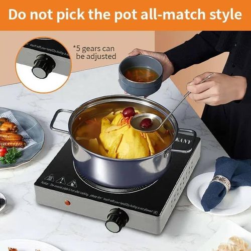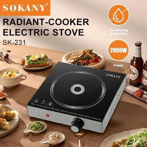 Sokany Single Burner Energy Saving Radiant Electric Countertop Infrared Cooker Induction Stove- Grey Why would you cook one at a time when you can cook TWO at the same time instead? Get an amazing deal on this twin hotplate infrared cooker. With its stylish compact design and carry handles, you can bring this cooktop anywhere you want and enjoy a good meal with your friends or family. Made of toughened ceramic glass, it is featured with a 4-digit LED display, where a touch button control panel is provided for you to select your desired cooking functions, timer, temperature control, and others! It has a maximum power of 2400W and it is very durable.