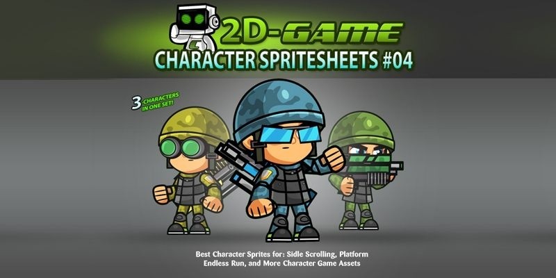 Soldiers 2D Game Character SpriteSheets 04. 2D Game Characters