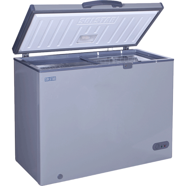 Solstar 350L CF350-SGLBSS Chest Freezer – Silver. If it seems like you’re often running out of space in your refrigerator freezer or you simply like to stock up , A chest Deep freezer is an ideal solution. From small to larger capacity Key Features: Solstar 350L CF350-SGLBSS Chest Freezer – Silver. Net capacity: 247 litres Compressor cooling Coolant type R134a CFC Free 2 Baskets Sliding Glass Door, Lock and Key External Handle With Integrated Lock 2 wheels + 2 Feet