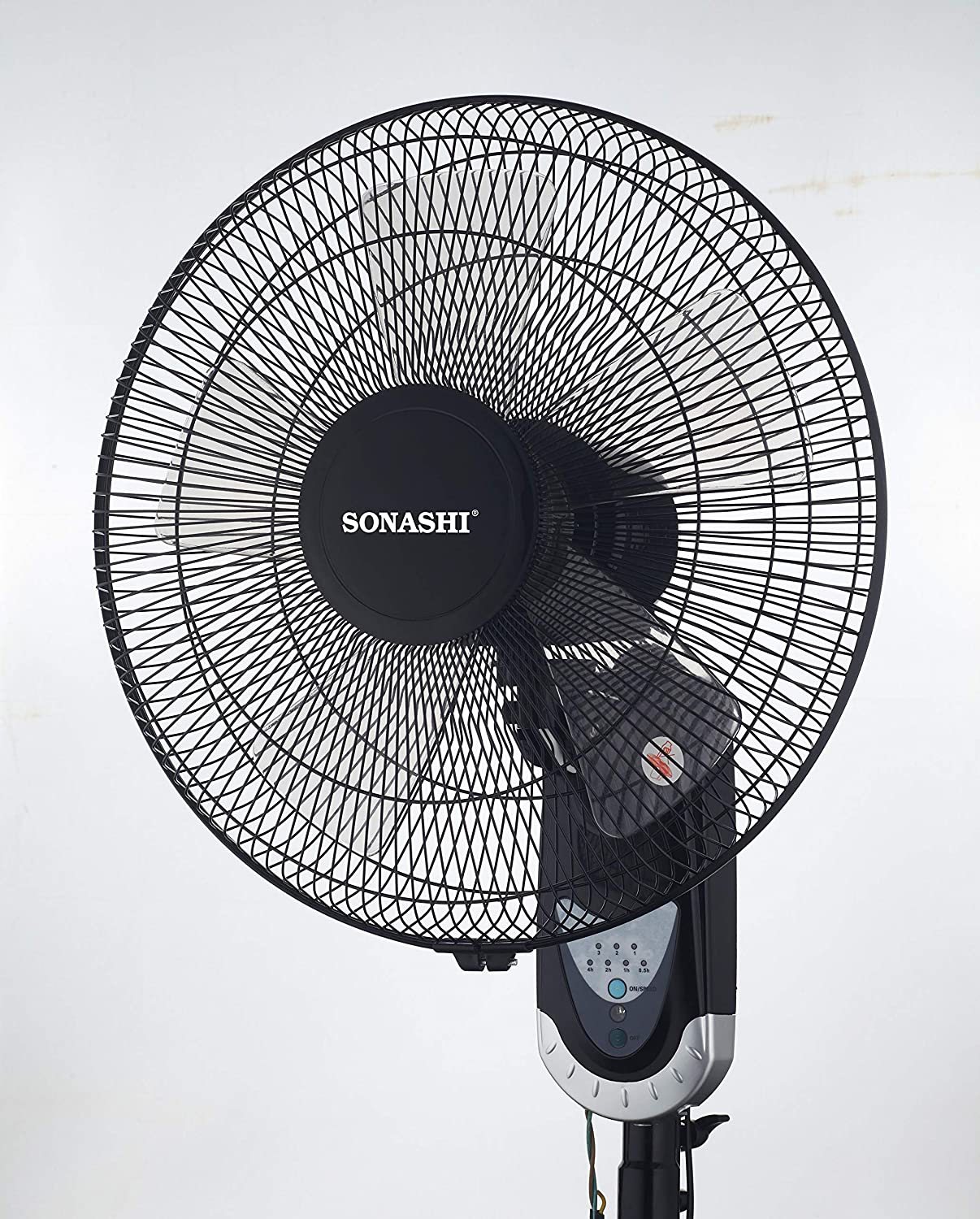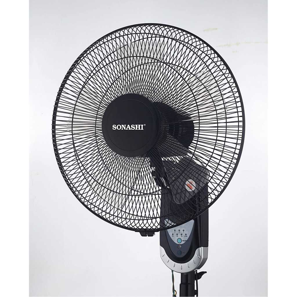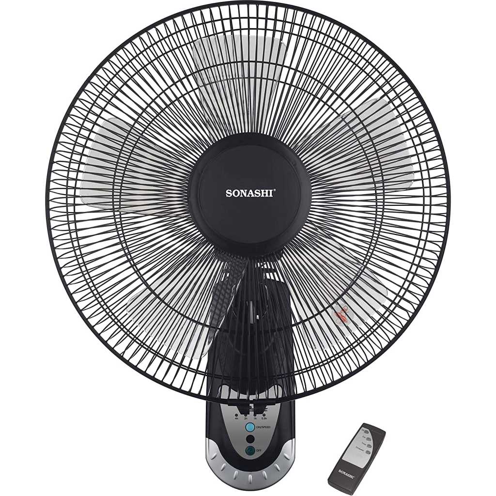 Sonashi 16 Inch Wall Fan With Remote Control Black SF-8007WR. Key Features: Sonashi 16 Inch Wall Fan With Remote Control Black SF-8007WR. Sleek Wall Fan: Sonashi Wall Mount Fan features a black and silver finish with a sleek design. One can easily install it on the wall for an ultimate cooling experience. Unparalleled Durability: This wall fan is made of heavy-duty high-quality material that ensures a stable, consistent, and lasting performance. its 5 PP transparent blades offer consistent cooling. The Korea Guard Ring aids air circulation. Versatile Wall Fan: This black wall fan offers three modes for appropriate cooling. It comes with a remote control so one can make settings from a distance without physically touching the fan. Minimizes Noise: Equipped with transparent blades and a copper motor, the Sonashi Wall Fan produces minimal noise and avoids disturbing your power naps. It features an auto-protection function that automatically prevents over-heating. Product Specifications: This black wall mount fan uses up to 240V of power to operate. It features 5 PP transparent blades, Korea Guard Ring, three Mode choices, and an auto-protection function for optimal performance. Use the remote control for convenience.