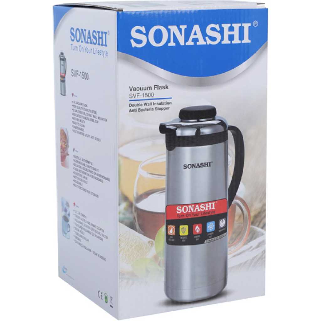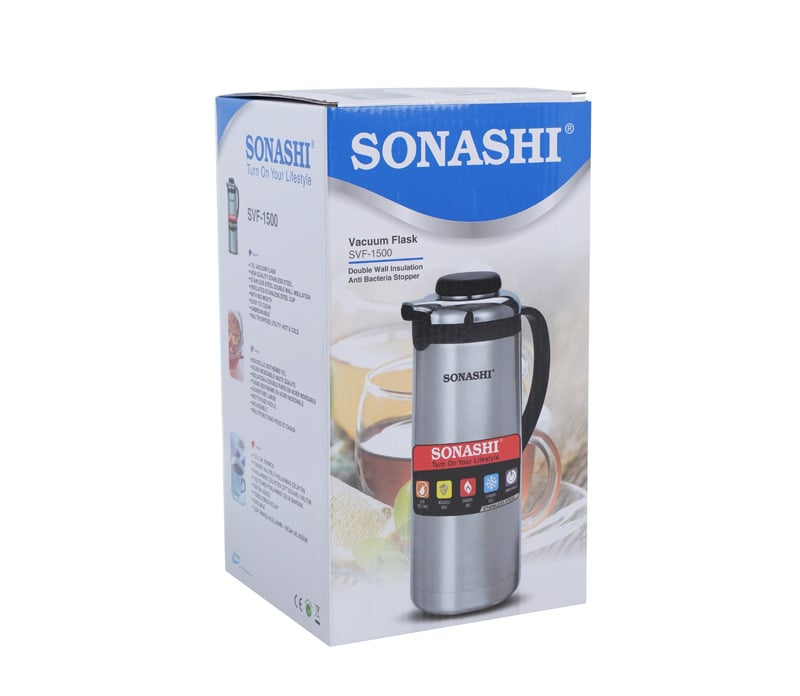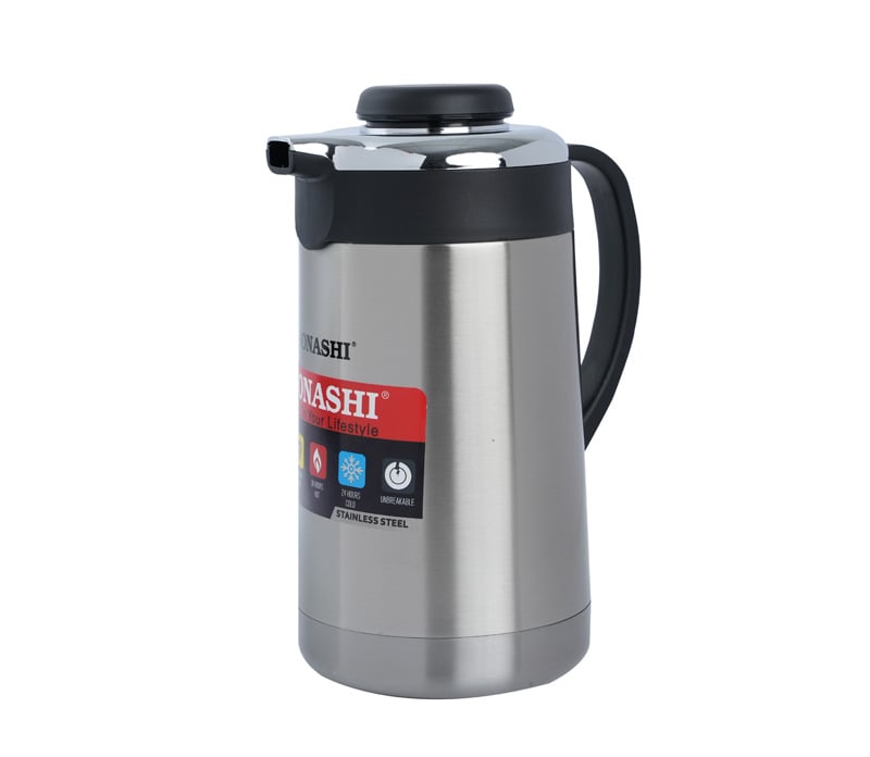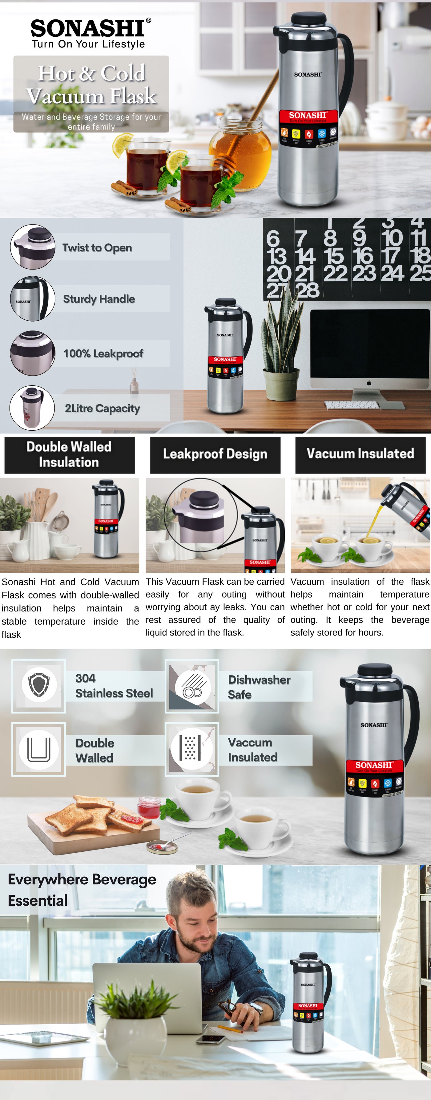 Sonashi 2.0- Litre Hot And Cold Vacuum Flask Silver/Black. Key Features: Sonashi 2.0- Litre Hot And Cold Vacuum Flask Silver/Black. Accurate Temperature: This vacuum flask keeps the beverage true to its temperature for hours. It can be used to store both hot and cold beverages to enjoy their perfect temperature and taste even after multiple hours of storage. Premium-Quality Flask: This high-quality stainless-steel flask is a combination of heavy-duty material which enables it to offer flavor-preserved beverages each time. It has a stainless-steel insulated cup on top. Multi-Purpose Flask: This vacuum flask can be used to store variant beverages. You can store hot tea, coffee, or milk for kids for the picnic, long drive, etc. It can also preserve cold beverages for everyday use. Easy Dispenser: This insulated vacuum flask has a wide mouth opening for dispensing the beverage quickly. With a comfortable handle, you can hold and serve the beverages to anyone without any trouble. Product Specifications: This unbreakable vacuum flask has a stainless-steel double wall insulation with 2-liter capacity. It can be used to store both hot and cold beverages. With an unbreakable design and insulated stainless-steel cup, it is safe to use around kids. It is easy to dispense beverages due to its big mouth opening.