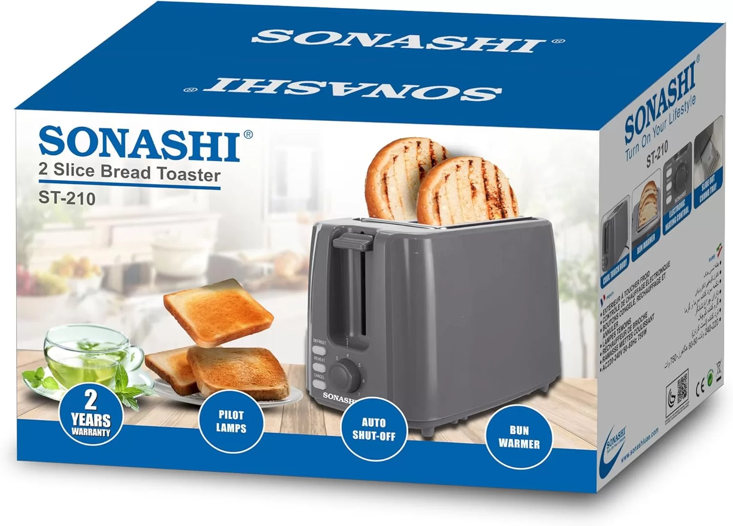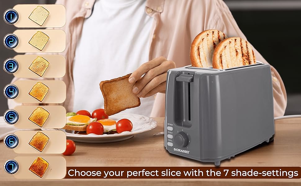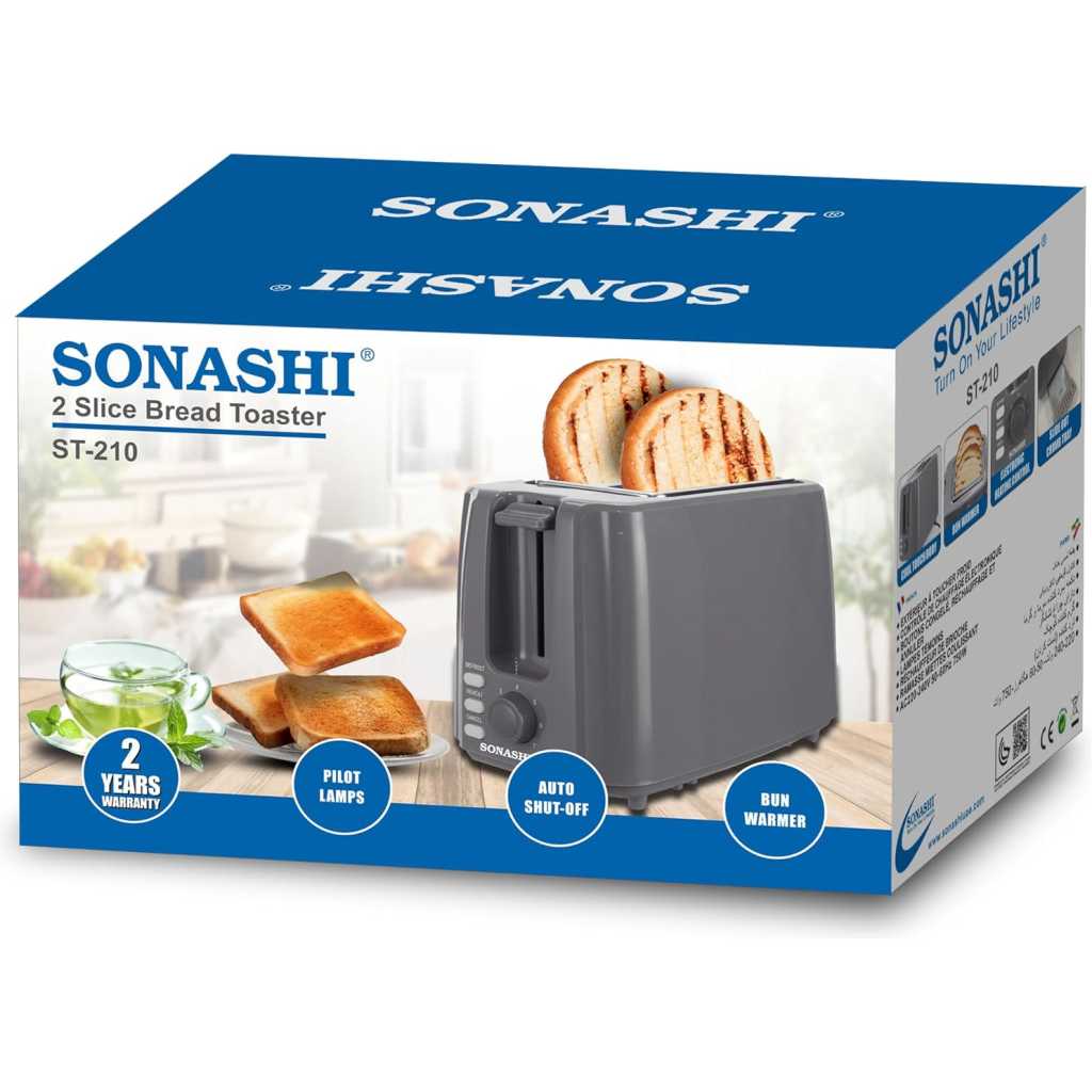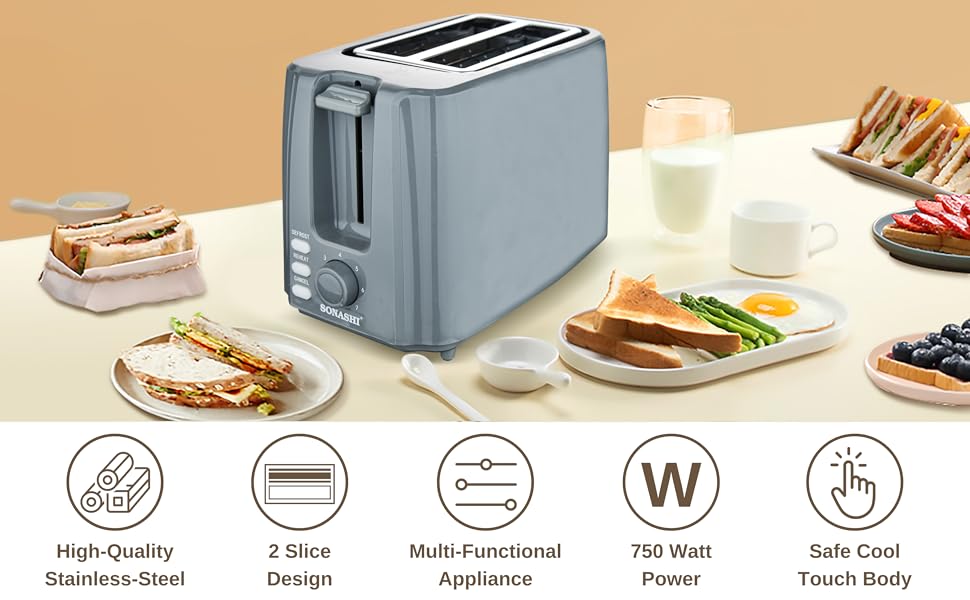 Key Features: Advanced Kitchen Toaster: This 2-slice pop-up toaster is easy to use. The defrost, reheat and cancel button gives better control over its operation. It is fitted with a pilot lamp for indicating power on/off mode. Electronic Heating Control: This bread toaster features an adjustable heating control knob lets one control the level of brownness of the toasted bread. Set it at a higher level for darker and crispier toast and a lower level for light brown toast. Detachable Crumb Tray: A detachable slide-out crumb tray at the bottom of the toaster collects the crumb and helps in easy cleaning. It prevents a mess in and around the machine. Construction & Design: This bread toaster can is compact for easy storage in a nook in the kitchen cupboard. Its cool touch makes it convenient to use. Additionally, the built-in carriage handle facilitates easy carriage. Product Specifications: The operation voltage of this bun warmer ranges from 220-240V with a frequency of 50/60Hz. It is powered by an 750W motor that helps in getting perfectly toasted bread in a short span of time.