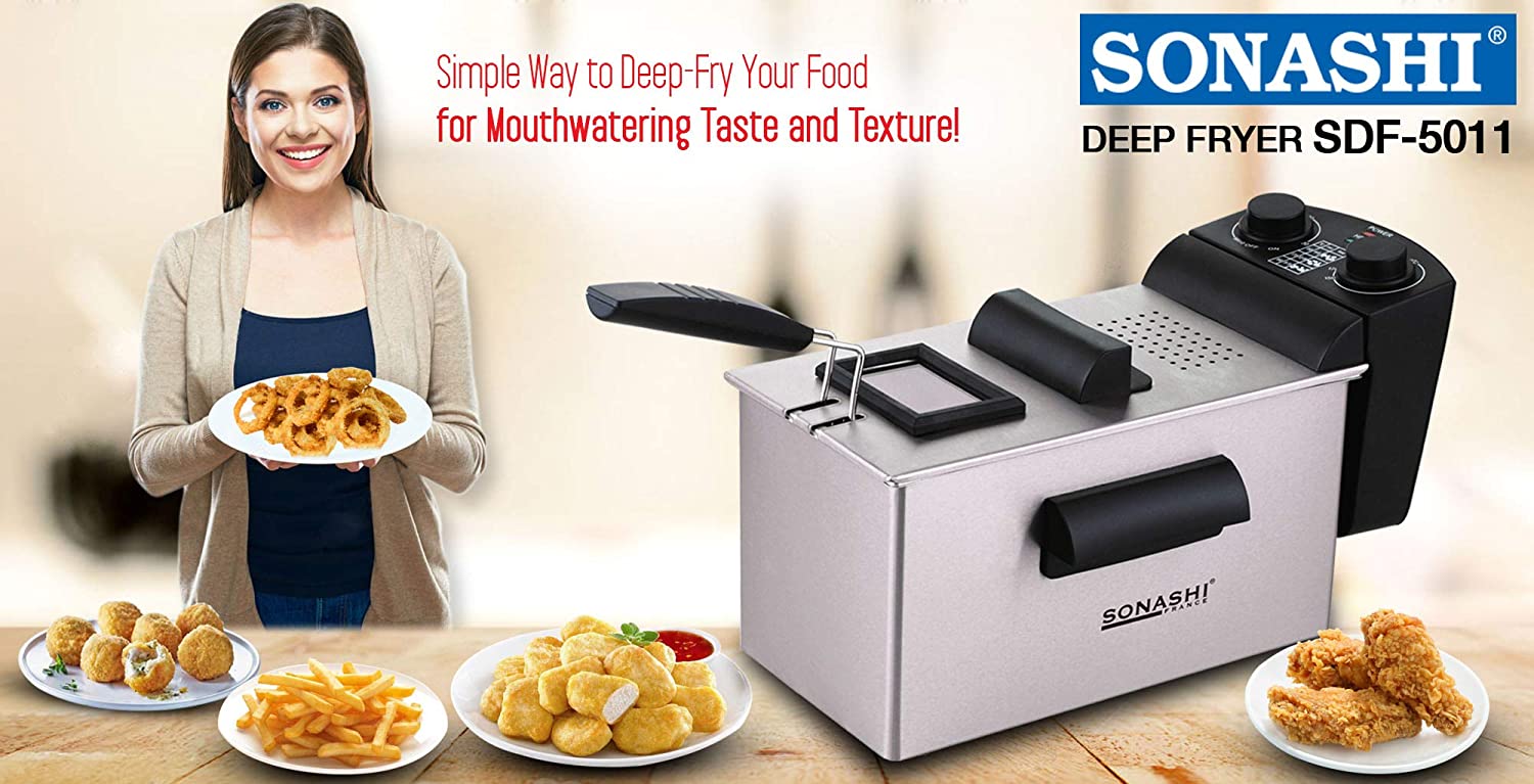 Key Features: Sonashi 3 Liters Deep Fryer – SDF-5011. Stainless steel housing With 30min timer function Non-slip feet All parts are dishwasher safe,except for the Adjust thermostat with light indicator