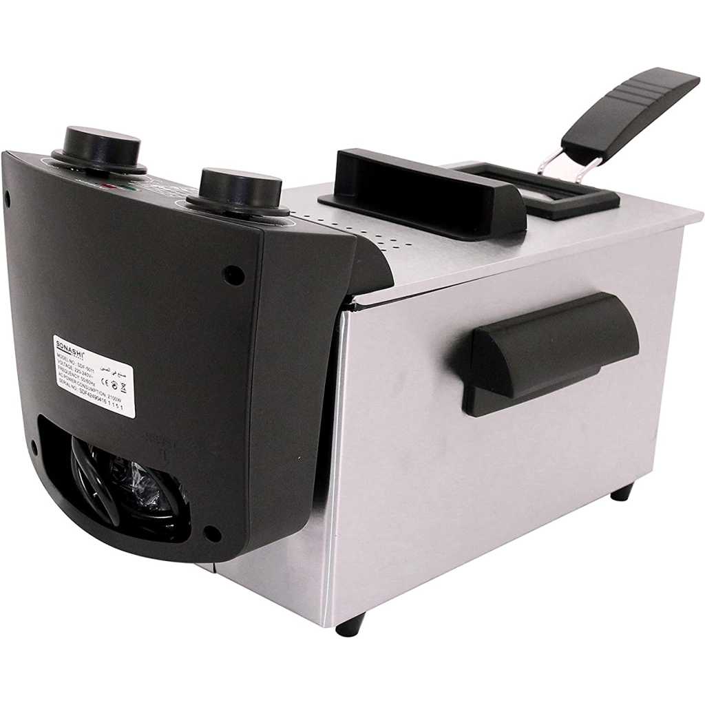 Sonashi 3 Liters Deep Fryer – SDF-5011. Brand: Sonashi Model: SDF-5011 Type: Deep Fryer Capacity: 3 liters Stainless steel housing Adjust thermostat with light indicator 1 big frying basket Removeable enameled inner pan Immersed oil heating element With 30min timer function Lid with easy viewing window Over heat protection Cool touch Heat resistant handles All parts are dishwasher safe,except for the Heating elements Easy to clean Non-slip feet Ac 220 – 240v 50 / 60hz 2100w
