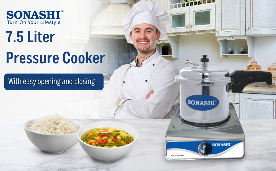 SONASHI 7.5L Pressure Cooker SPC-275 – Heavy-Base Aluminium Pressure Cooker with Whistling Weight Valve, Extra Strong Lugs, Mirror Polish | Home Appliances.